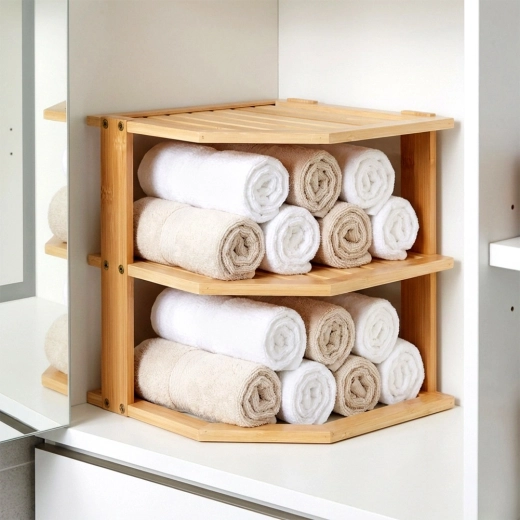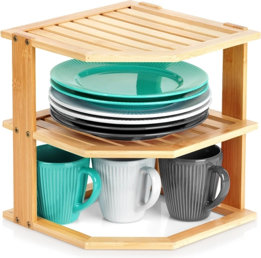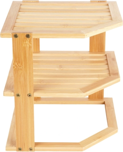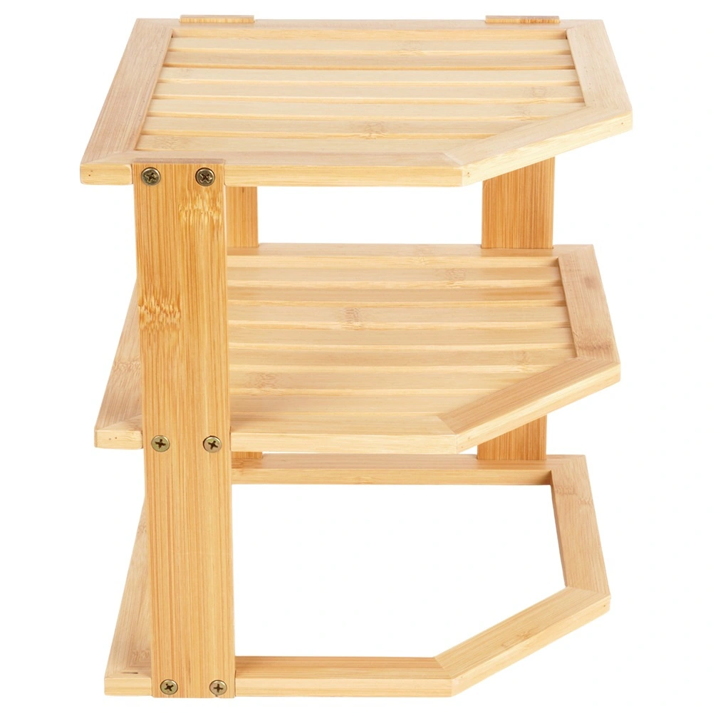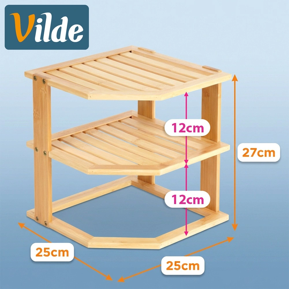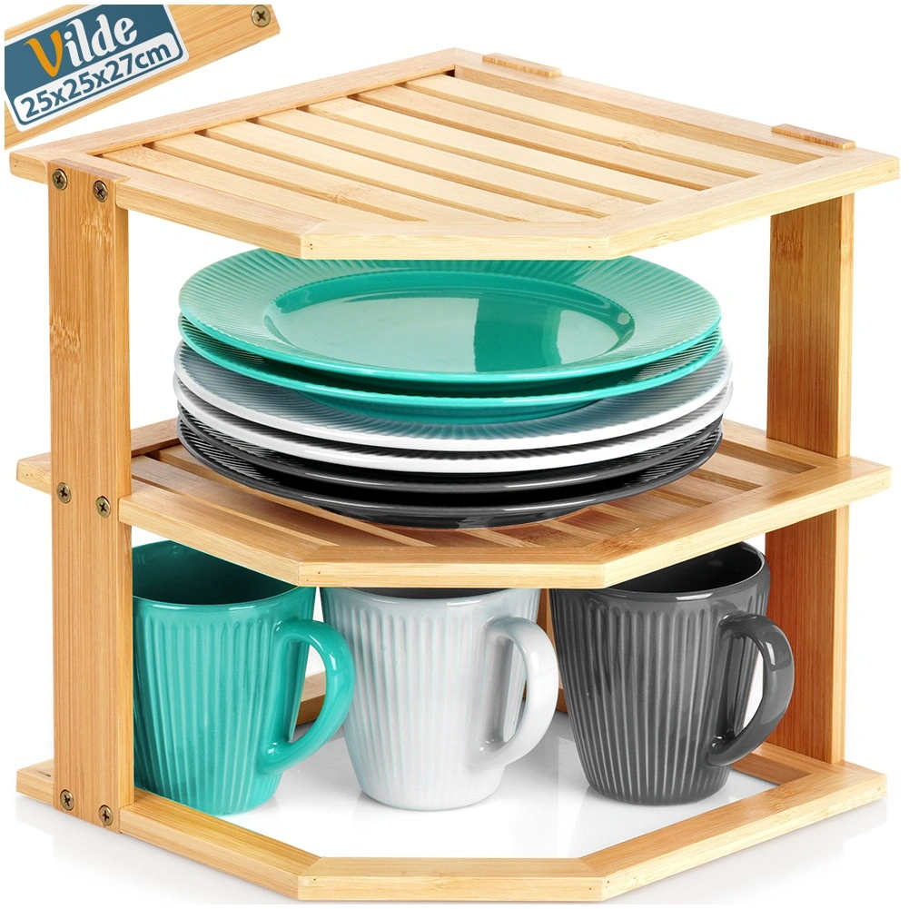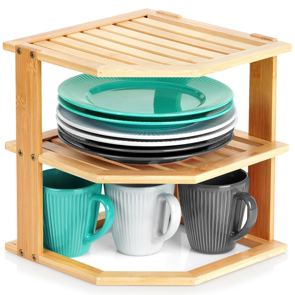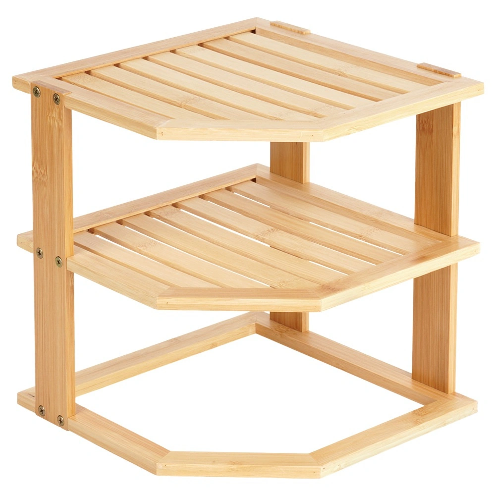 Pratique, l’étagère d’angle en bois de bambou permet d’exploiter intelligemment un coin du plan de travail ou d’un placard. Elle offre davantage d’espace de rangement grâce à sa conception à plusieurs niveaux, est stable, résistante à l’humidité et facile à entretenir. Idéale pour les épices, les verres, les mugs ou les cosmétiques dans la cuisine, le garde-manger ou la salle de bain.