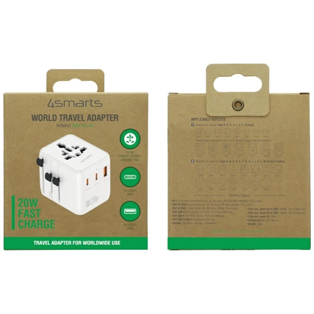 Le 4smarts NOMAD 20W est le compagnon idéal pour les voyages d’affaires comme privés. Il réunit dans un seul boîtier une réduction globale de prise et un chargeur rapide multi‑ports, ce qui lui permet d’alimenter aussi bien les petits appareils électroniques via USB que des équipements via le secteur classique. Son design compact blanc se glisse dans tout sac et, grâce à la technologie GaN, l’adaptateur est plus petit, plus efficace et plus froid.