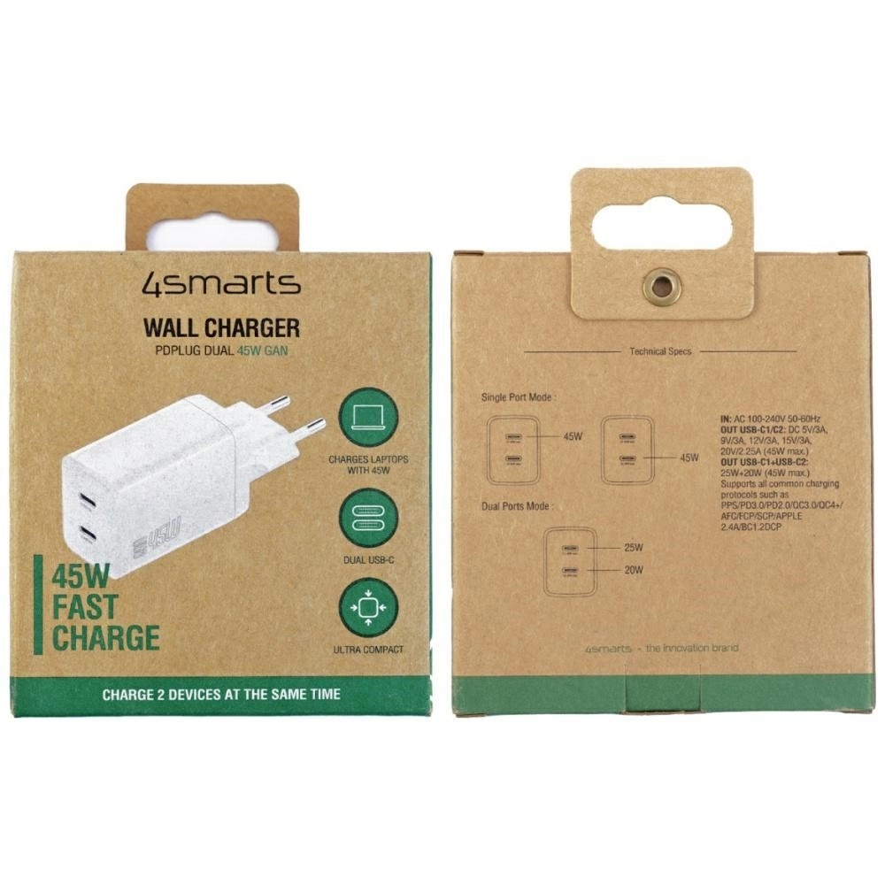 Profitez d’une charge rapide et efficace dans un format minimaliste. Grâce à la technologie GaN moderne, le chargeur est plus petit, plus froid et plus efficace, tout en étant capable d’alimenter des appareils plus exigeants. Les deux ports USB‑C permettent de recharger simultanément jusqu’à deux appareils, ce qui vous fait gagner du temps et de la place sur la prise.