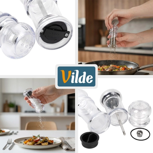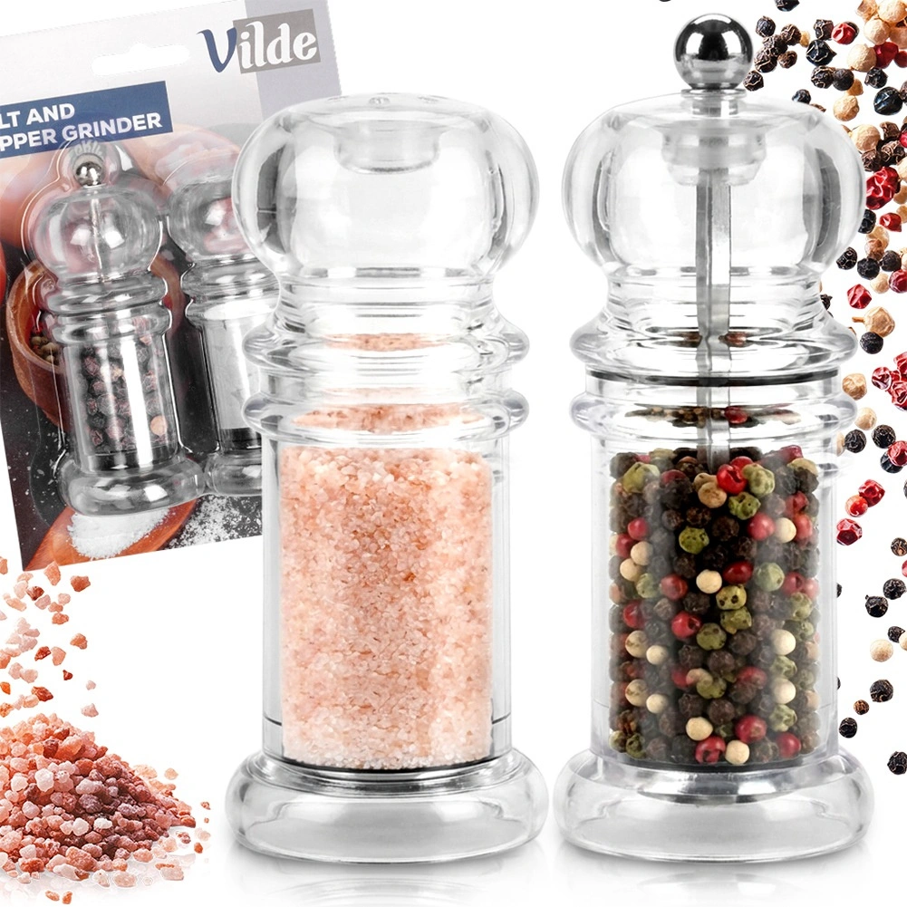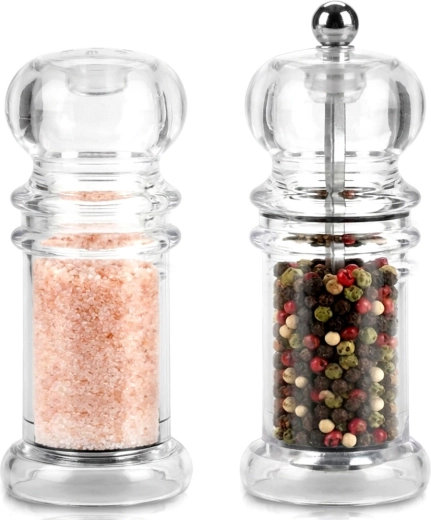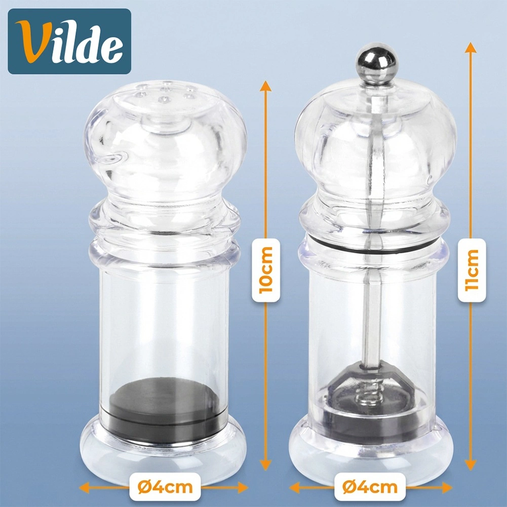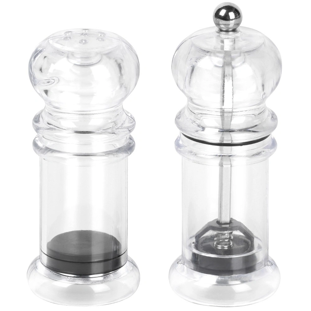 Pratique 2 en 1 pour l’assaisonnement à table et en cuisine : moulin à poivre manuel avec mécanisme céramique et salière en acrylique transparent. Corps transparent pour contrôler facilement la quantité et distinguer sel et poivre, design classique adapté à tout intérieur. Idéal pour la maison comme pour la restauration, facile à remplir et à nettoyer.
