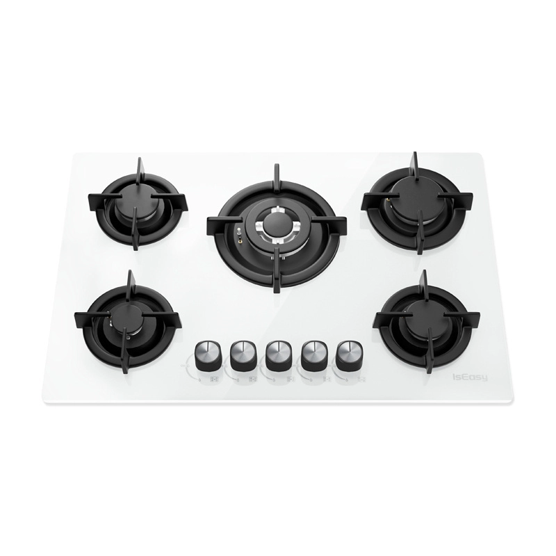 Découvrez la flexibilité des cinq zones de cuisson : du réchauffage délicat des sauces à la friture rapide. La plage de puissances (1x 1 kW, 2x 1,75 kW, 1x 2,7 kW, 1x 3,3 kW) garantit une flamme idéale pour chaque plat. La surface en verre apporte un look moderne et se nettoie très facilement – un simple coup de chiffon humide suffit.