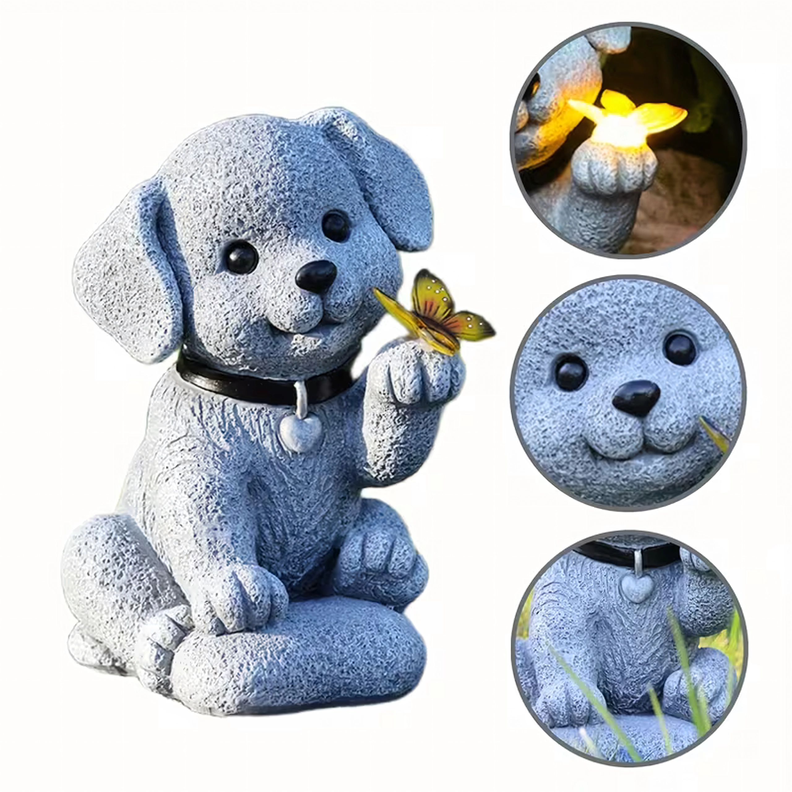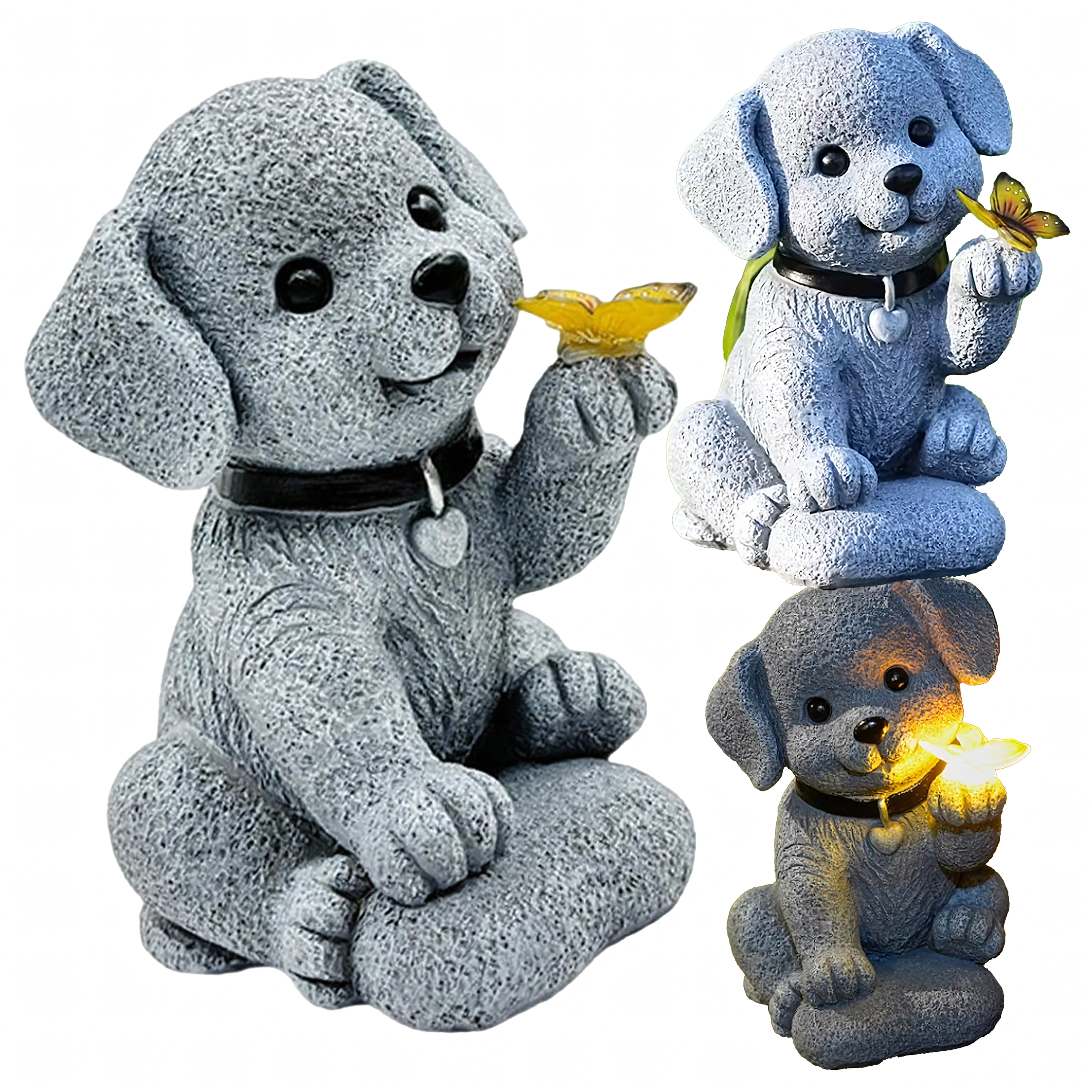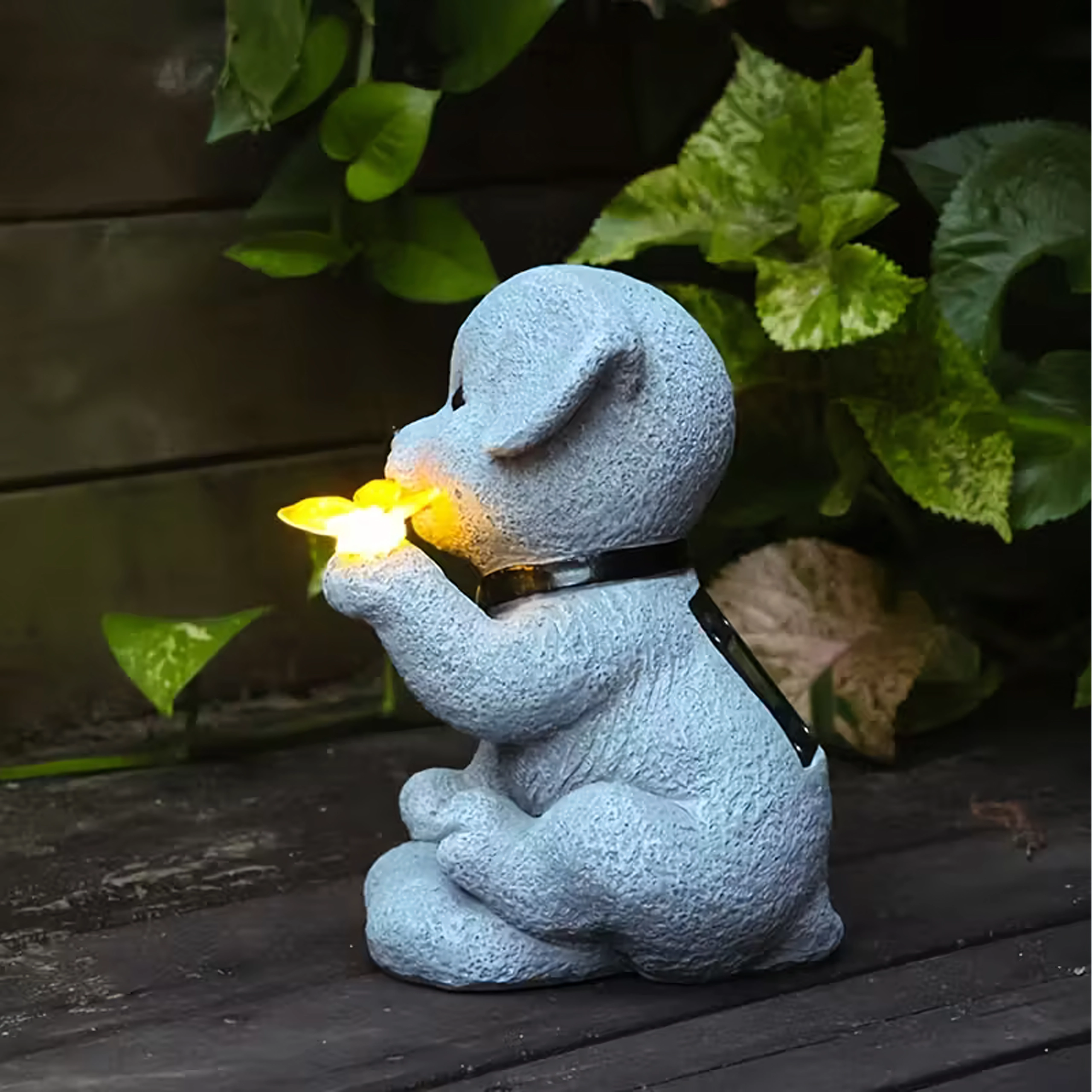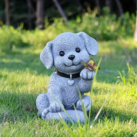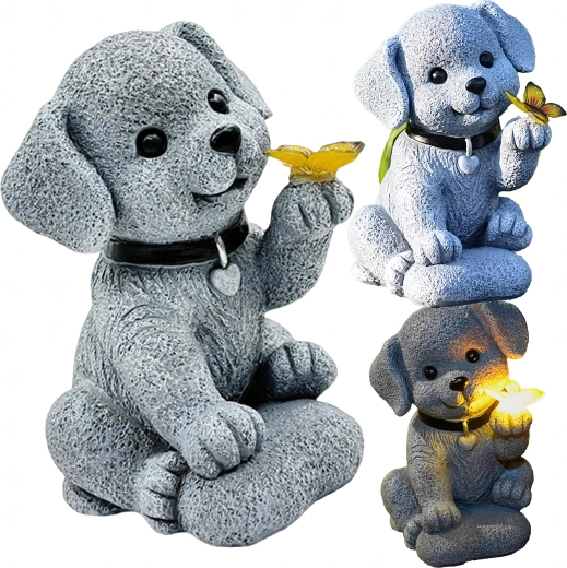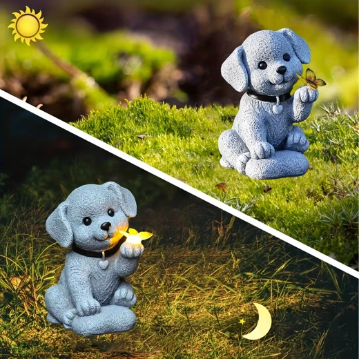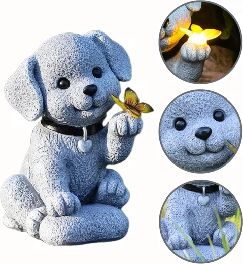 - Lampe décorative de jardin solaire – figurine de chien avec papillon