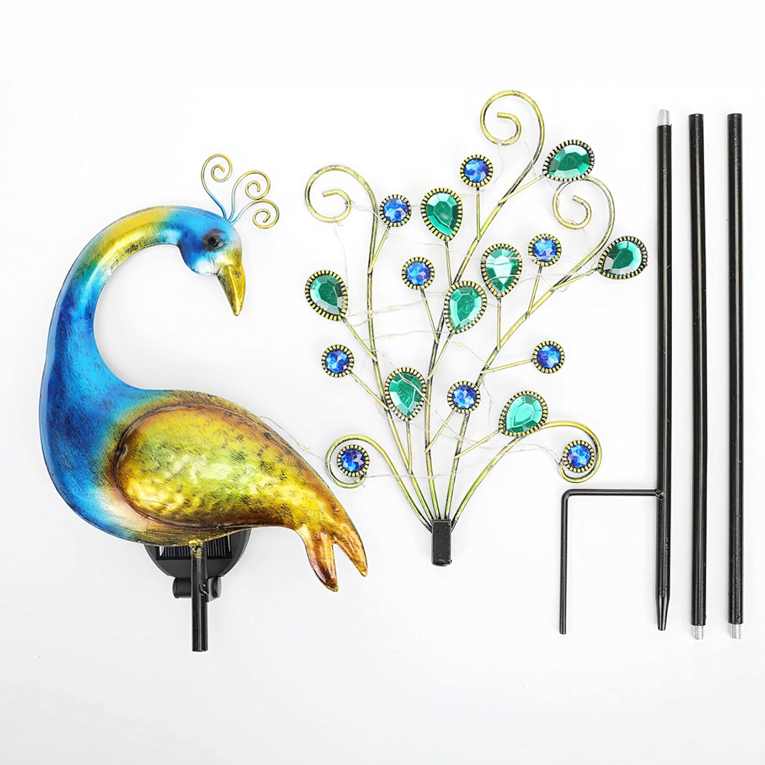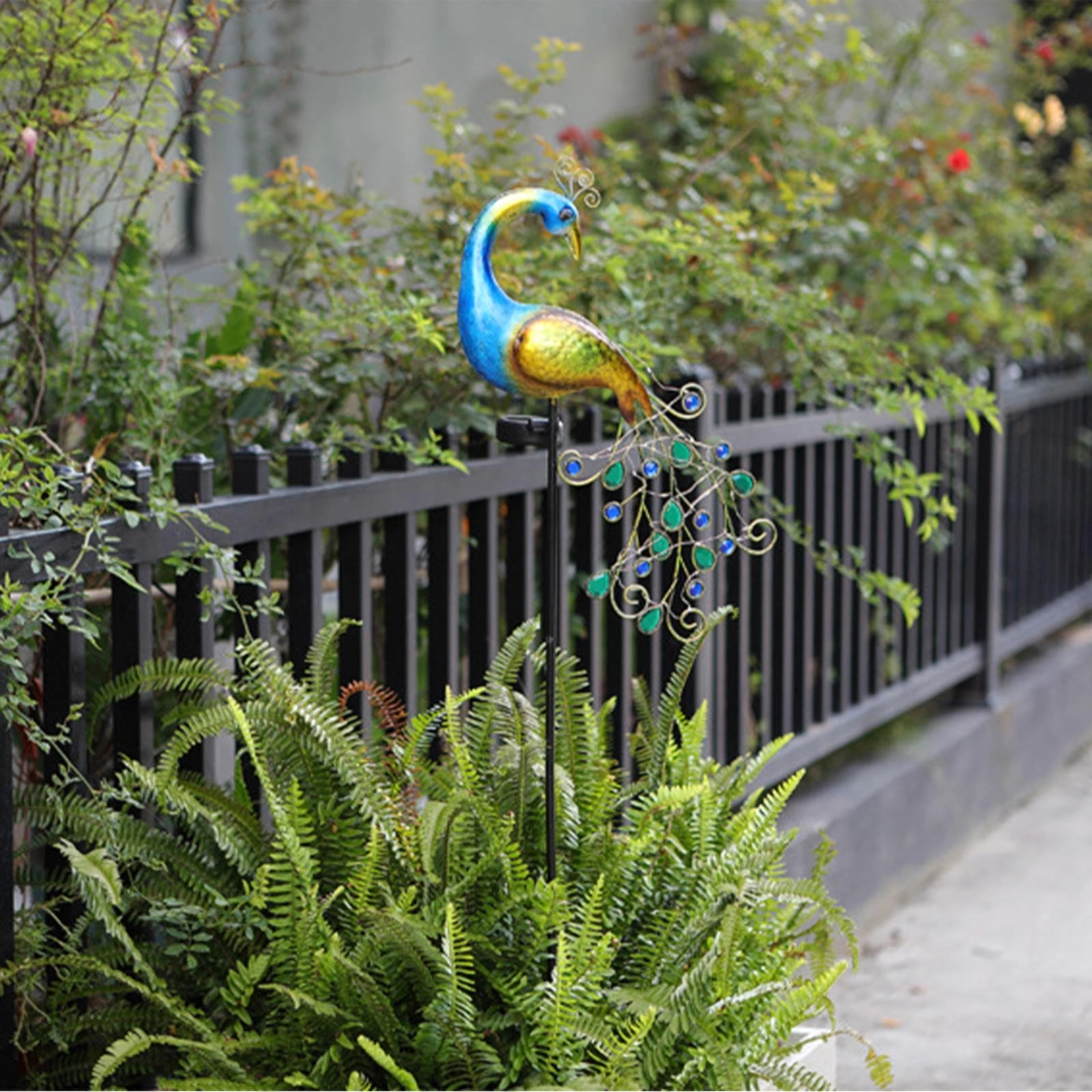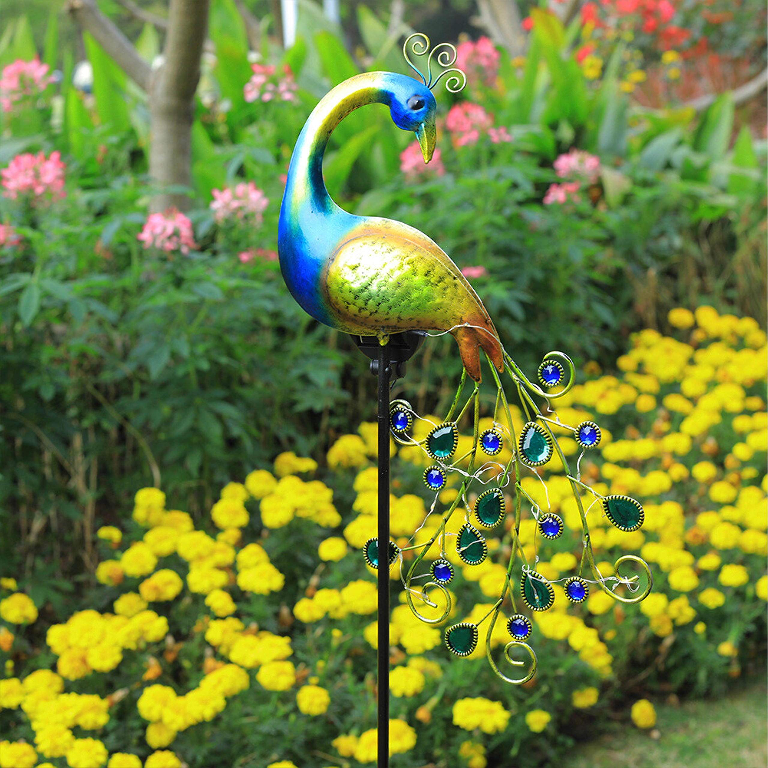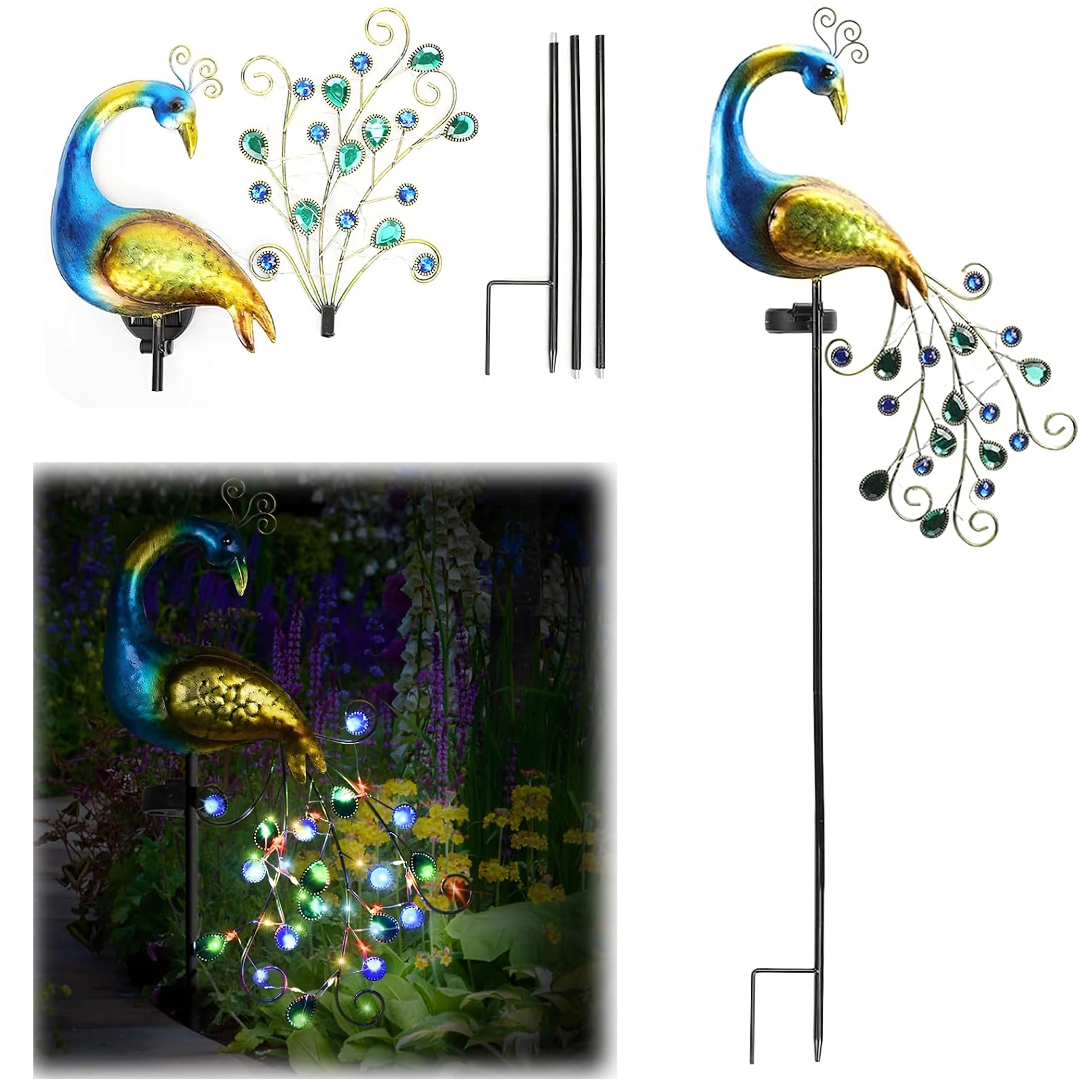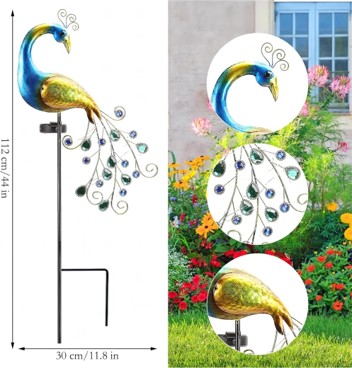 - 1 pc paon solaire sur tige avec pique de terre