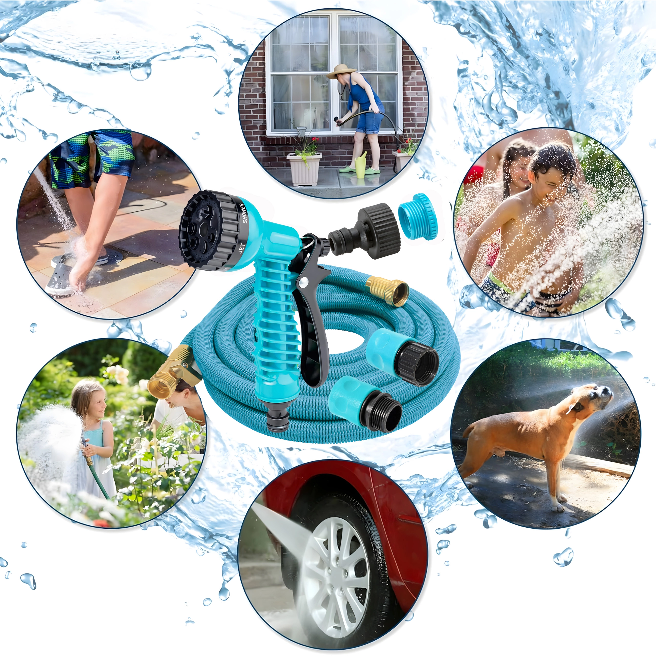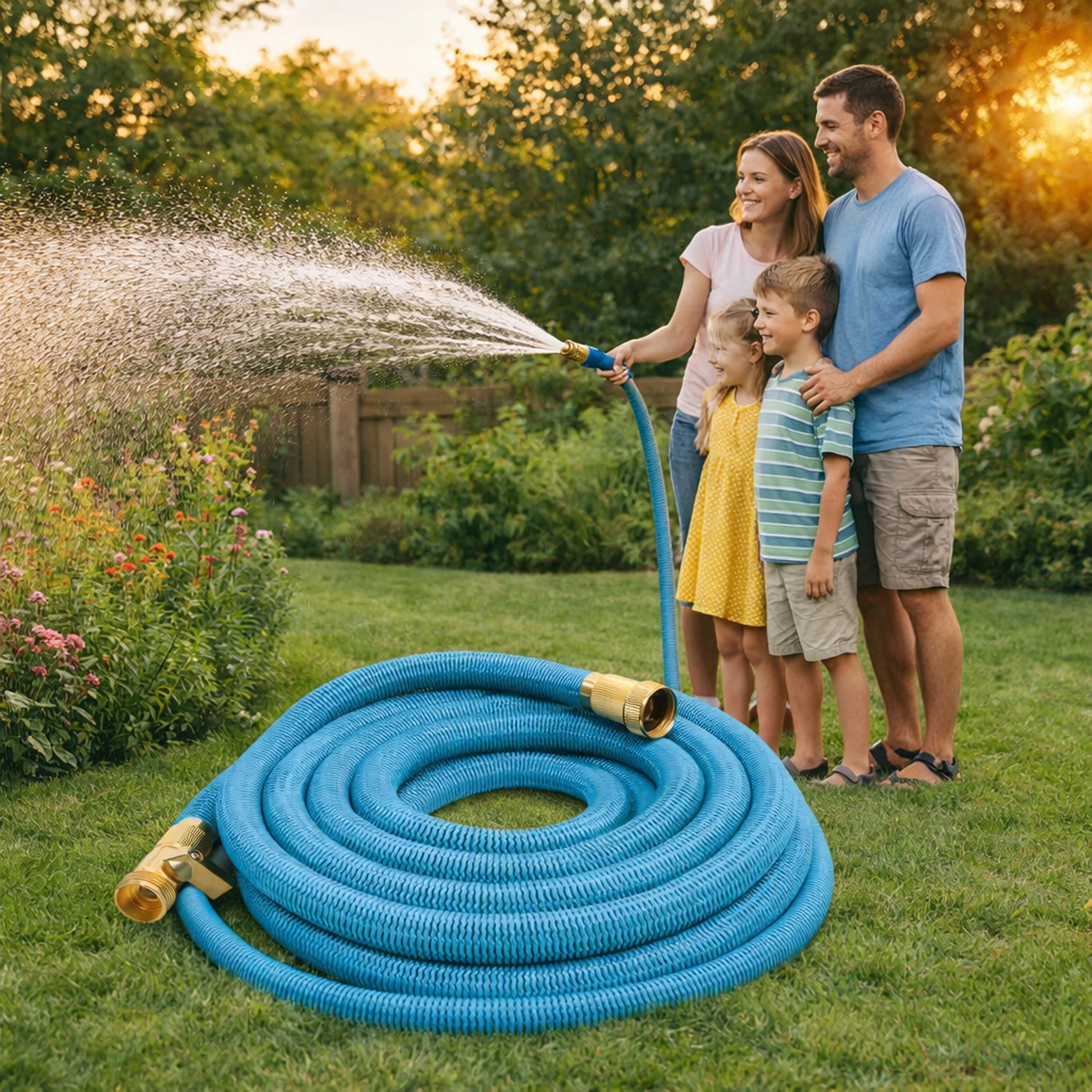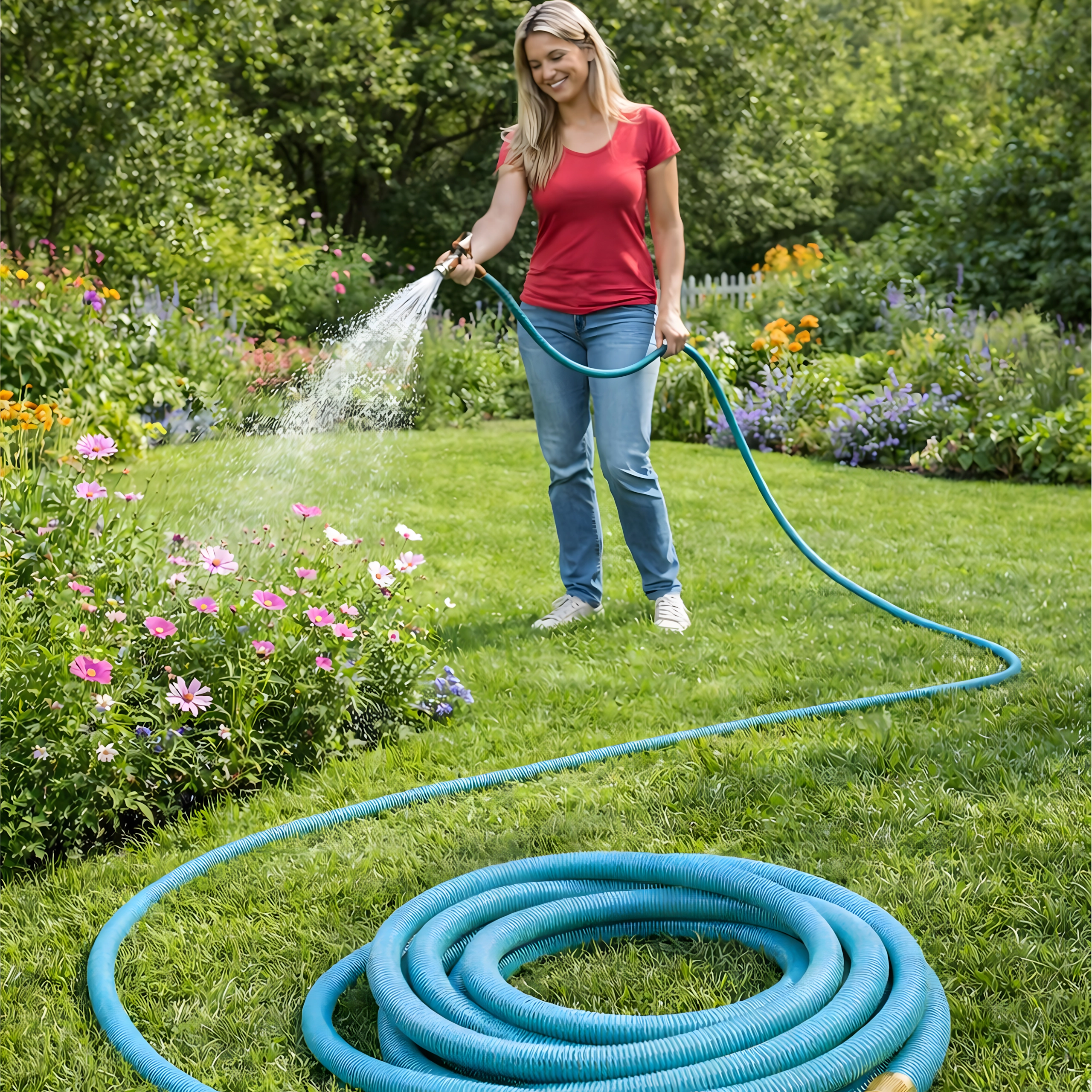 Livré avec un pistolet à plusieurs modes offrant brume fine, douche et jet puissant – idéal pour arroser les massifs, laver la voiture ou rincer les terrasses. Le tuyau est léger, se transporte aisément et se range sur un support ou dans un coffre.