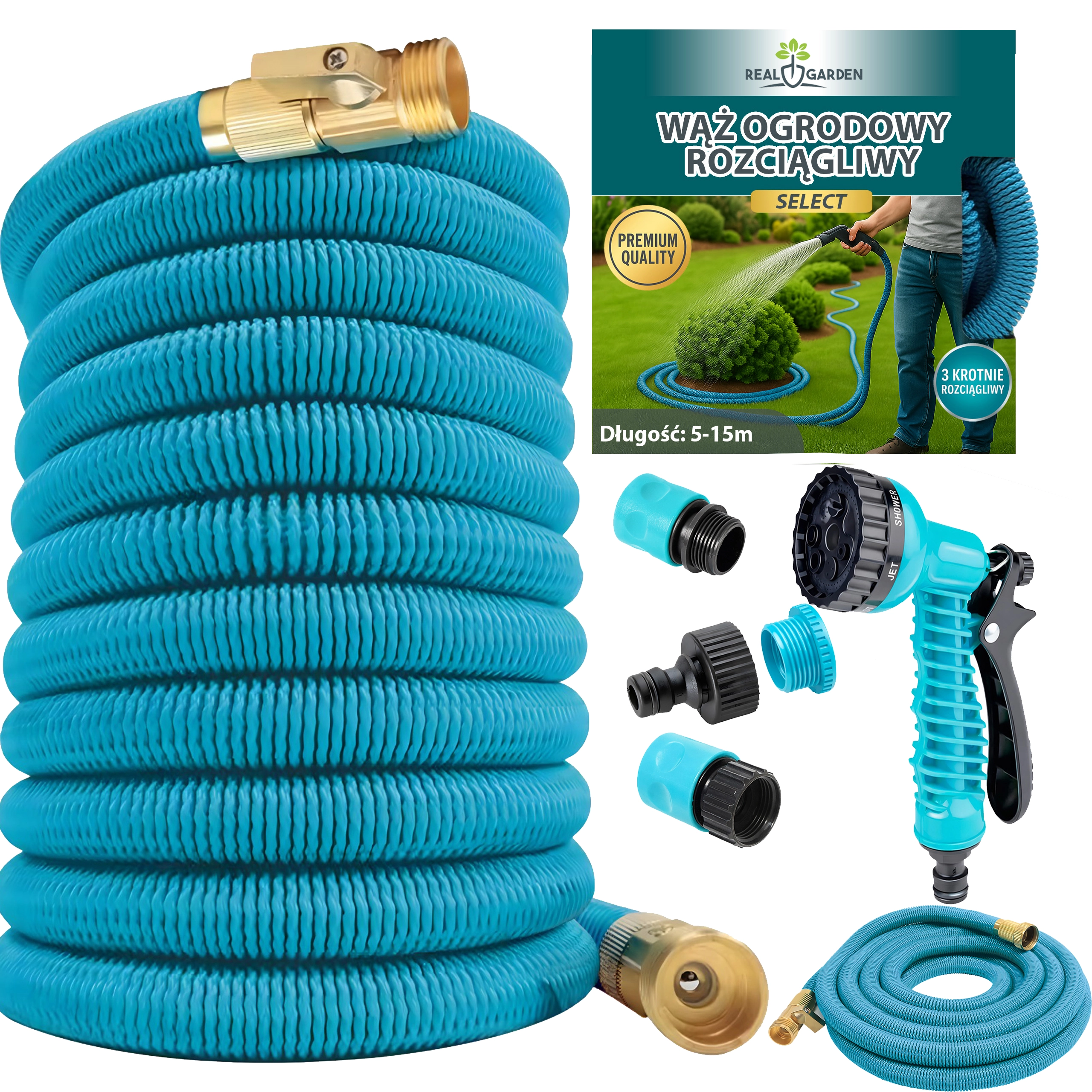 Tuyau d’arrosage extensible et élastique 5–15 m avec pistolet pulvérisateur Premium