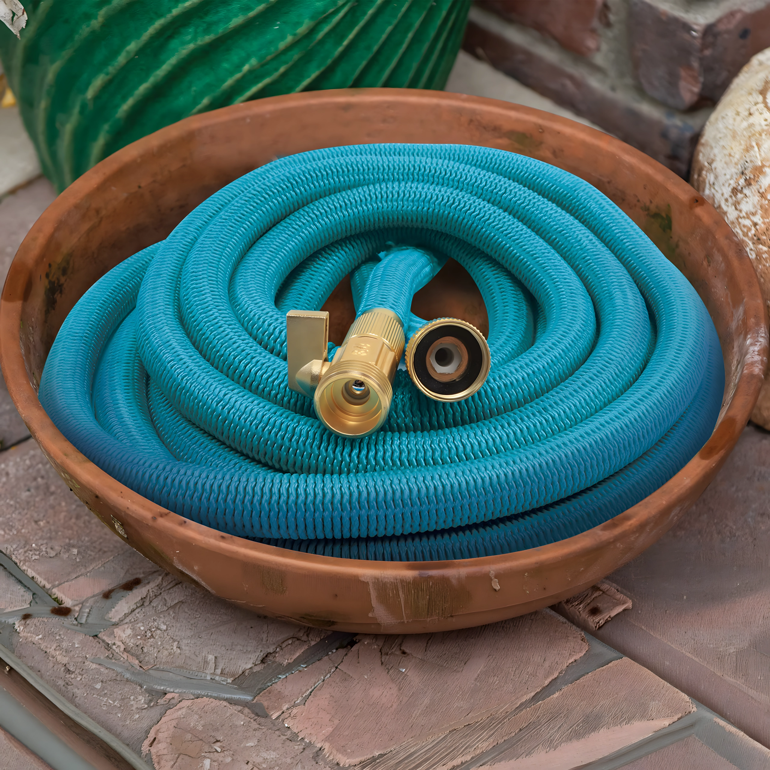 Tuyau d’arrosage léger et extensible 5–15 m avec raccords métalliques 1/2" et 3/4" et pistolet pulvérisateur polyvalent pour l’arrosage et le nettoyage. Il offre une structure tissée résistante, est anti-nœuds, se range facilement et, grâce à sa vanne, permet un contrôle rapide du débit.