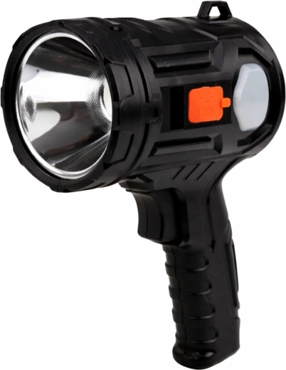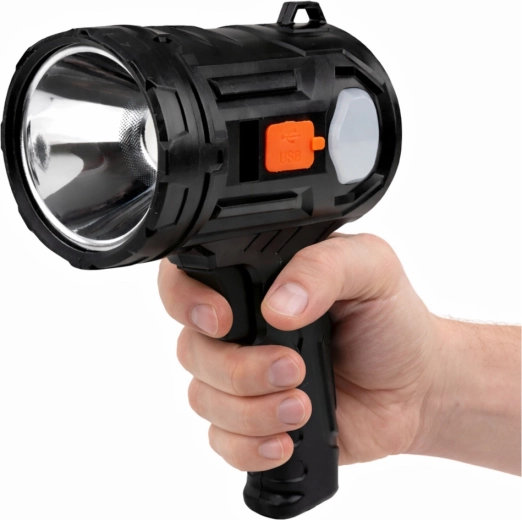 Grande lentille de projecteur pour une longue portée et poignée pistolet ergonomique pour une tenue sûre et un contrôle aisé d’une seule main.