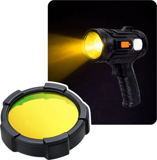 L’emballage comprend trois filtres interchangeables (rouge, jaune, bleu) qui ajustent la couleur du faisceau — pour préserver la vision nocturne, limiter les reflets ou pour la signalisation. Sa construction robuste en ABS + PC, sa prise en main sûre et sa protection IPX4 contre les éclaboussures garantissent la fiabilité sur le terrain même par mauvais temps.