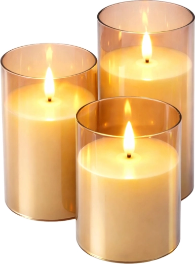 Élégant lot de 3 bougies LED de hauteurs différentes créant une ambiance chaleureuse et agréable sans fumée ni flamme nue. Grâce à l’effet de flamme réaliste, au minuteur et au réglage de la luminosité sur la télécommande, elles sont idéales pour le salon, la chambre ou une table de fête. Solution sûre pour les foyers avec enfants et animaux de compagnie.