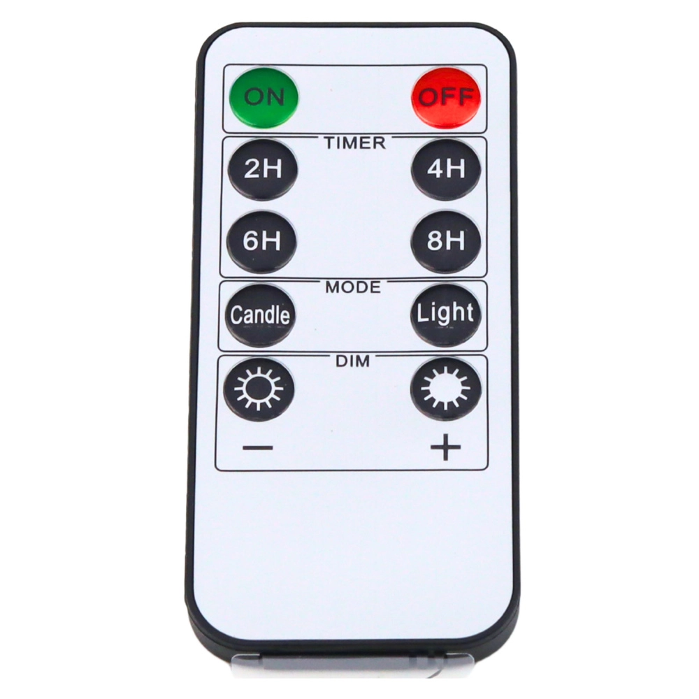 Allumez, éteignez, tamisez et réglez le minuteur (2/4/6/8 h) avec une seule télécommande – sans avoir à manipuler les bougies.