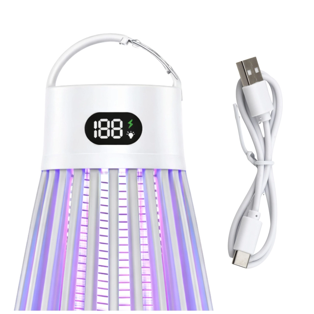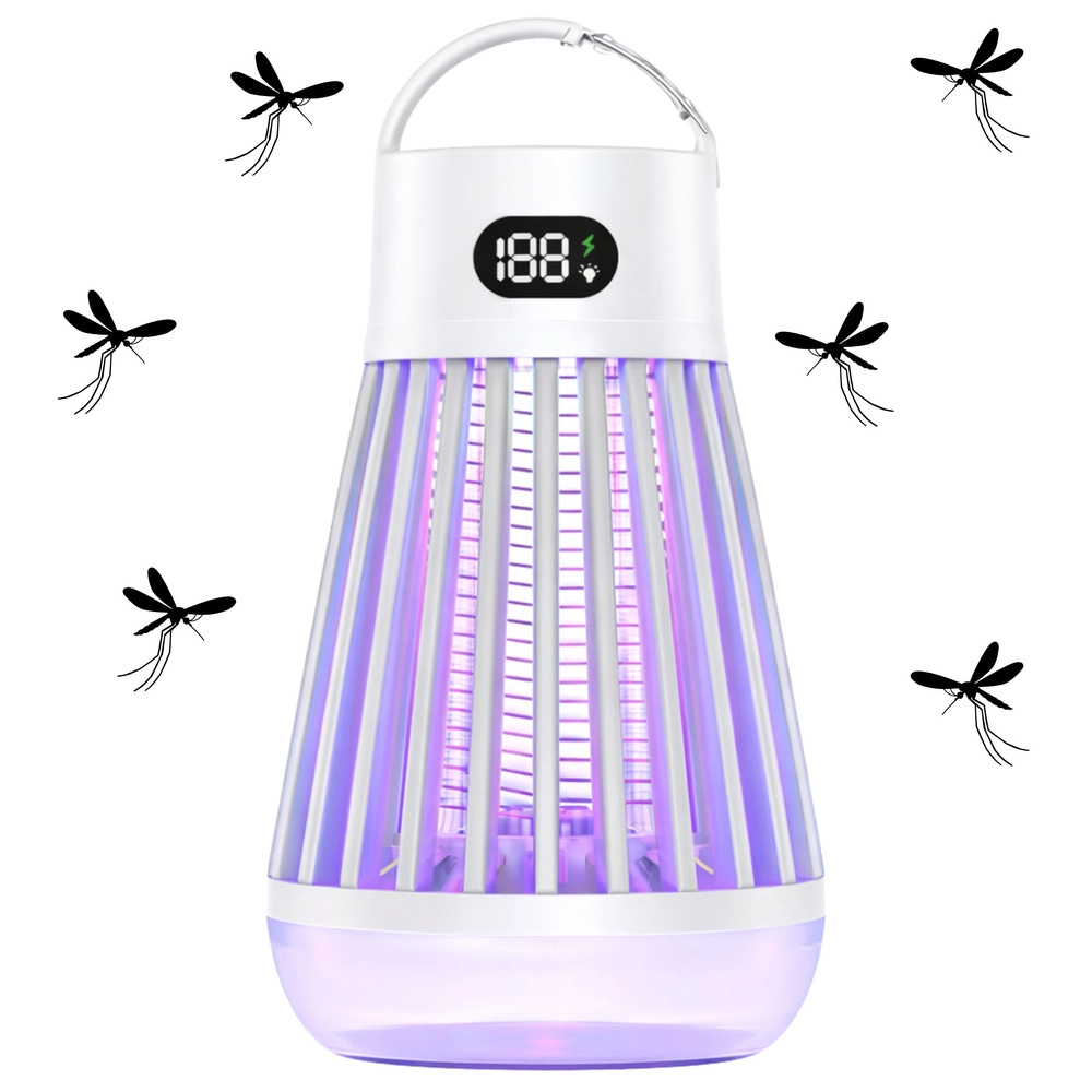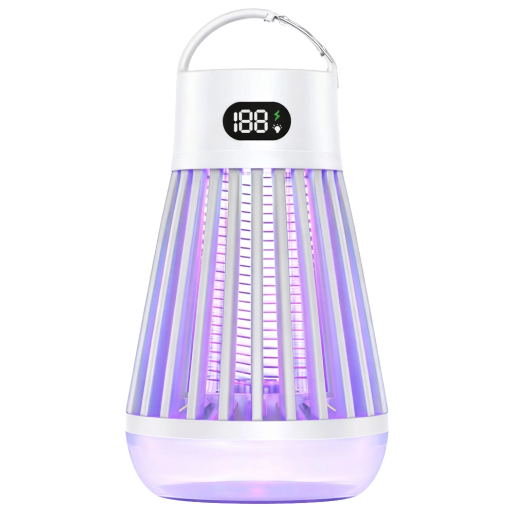 Lampe anti-insectes électrique moderne combinant un puissant attractif UV (365/395/410 nm) et une grille électrique interne de 2000 V pour éliminer rapidement les moustiques et insectes volants. Grâce à sa batterie rechargeable de 2000 mAh, à la recharge USB‑C et à son fonctionnement silencieux sans produits chimiques, elle est idéale pour l’appartement, la terrasse, le balcon et le camping. La grille de protection et l’écran numérique assurent un usage sûr et clair.