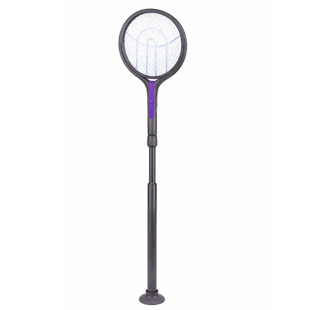 Pratique, la tapette électrique 2‑en‑1 combine une raquette électrique manuelle et une lampe anti‑insectes sur pied dans un seul appareil. Grâce à sa poignée télescopique jusqu’à 106 cm, sa tête rotative avec blocage et sa grille de sécurité à trois couches, vous éliminez facilement mouches, moustiques et autres insectes volants, à l’intérieur comme à l’extérieur. L’alimentation est assurée par une batterie rechargeable de 1200 mAh avec charge USB‑C pratique.