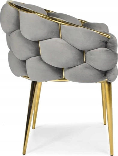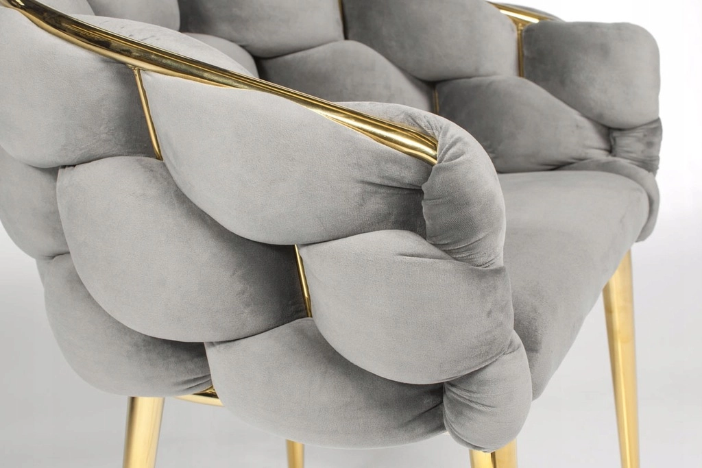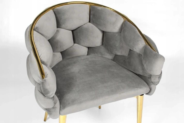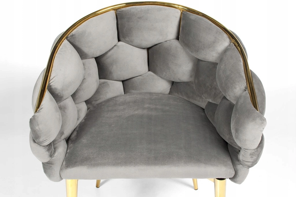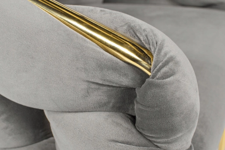 Chaise fauteuil en velours FERTONE BALLOON, gris avec pieds or