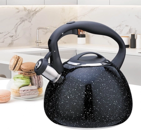 Le sifflet intégré signale clairement l’ébullition, évitant toute surchauffe de l’eau et garantissant une utilisation à la fois sûre et confortable.