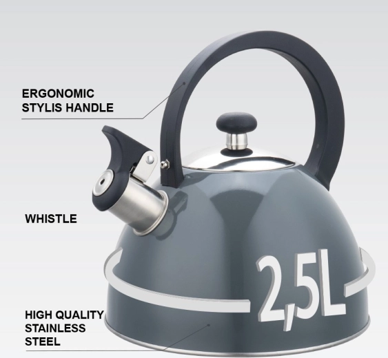 La populaire bouilloire siffleuse Maestro MR-1302 en élégante couleur grise allie design intemporel et performances fiables. Le sifflet signale clairement le point d’ébullition, vous permettant de garder l’eau sous contrôle sans surveillance inutile. L’acier inoxydable assure longévité, entretien aisé et hygiène au quotidien.