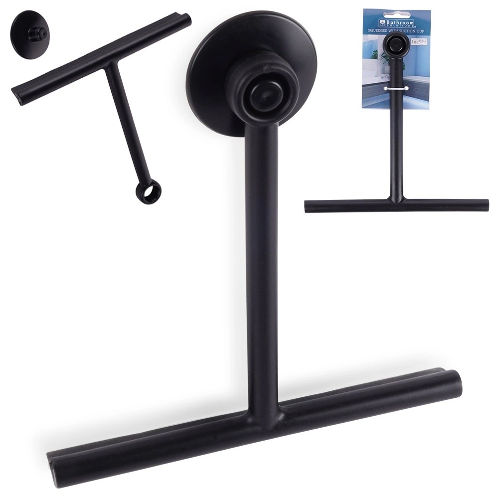 Raclette universelle noire pour vitres avec ventouse pratique pour une suspension facile, garde vos douches, fenêtres et miroirs parfaitement propres. Grâce au plastique de qualité et au bord flexible en TPE, elle évacue l’eau rapidement et sans effort, laissant les surfaces sans traces et sans rayures. Des dimensions compactes et un design minimaliste élégant s’intègrent parfaitement dans toute salle de bains.