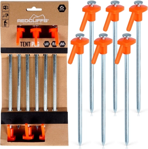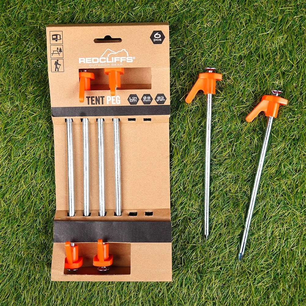 L’emballage pratique de six piquets couvre la plupart des points d’ancrage d’une tente et est idéal pour l’équipement de camping.