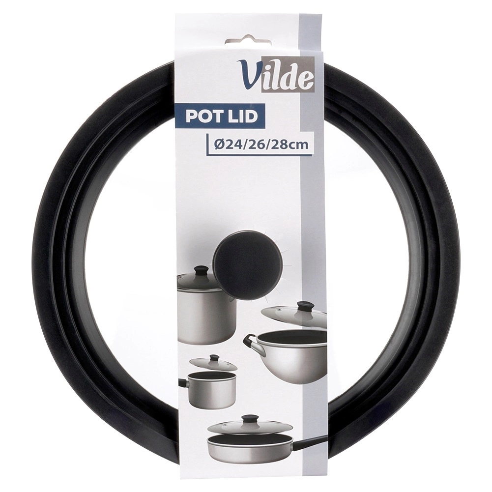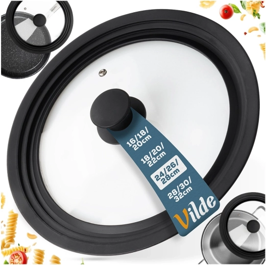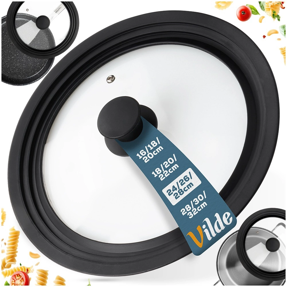 Pratique couvercle universel 3-en-1 pour casseroles et poêles de 24, 26 et 28 cm, il économise de la place en cuisine et assure une étanchéité parfaite. Grâce à son large bord en silicone, il protège les bords des ustensiles, le verre trempé transparent permet de surveiller la cuisson et la soupape de vapeur intégrée évite les débordements. Compatible lave-vaisselle, résistant aux hautes températures et doté d’une poignée ergonomique. Produit original de la marque VILDE.