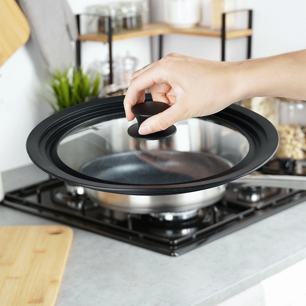 - Couvercle universel en verre avec bord en silicone