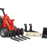 Vivez l'amusement avec le chargeur rouge Bruder Schäffer 2034, qui est une réplique fidèle d'un véritable chargeur. Il est fourni avec un bras fonctionnel et des accessoires, y compris des fourches et une palette.