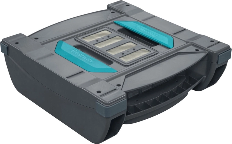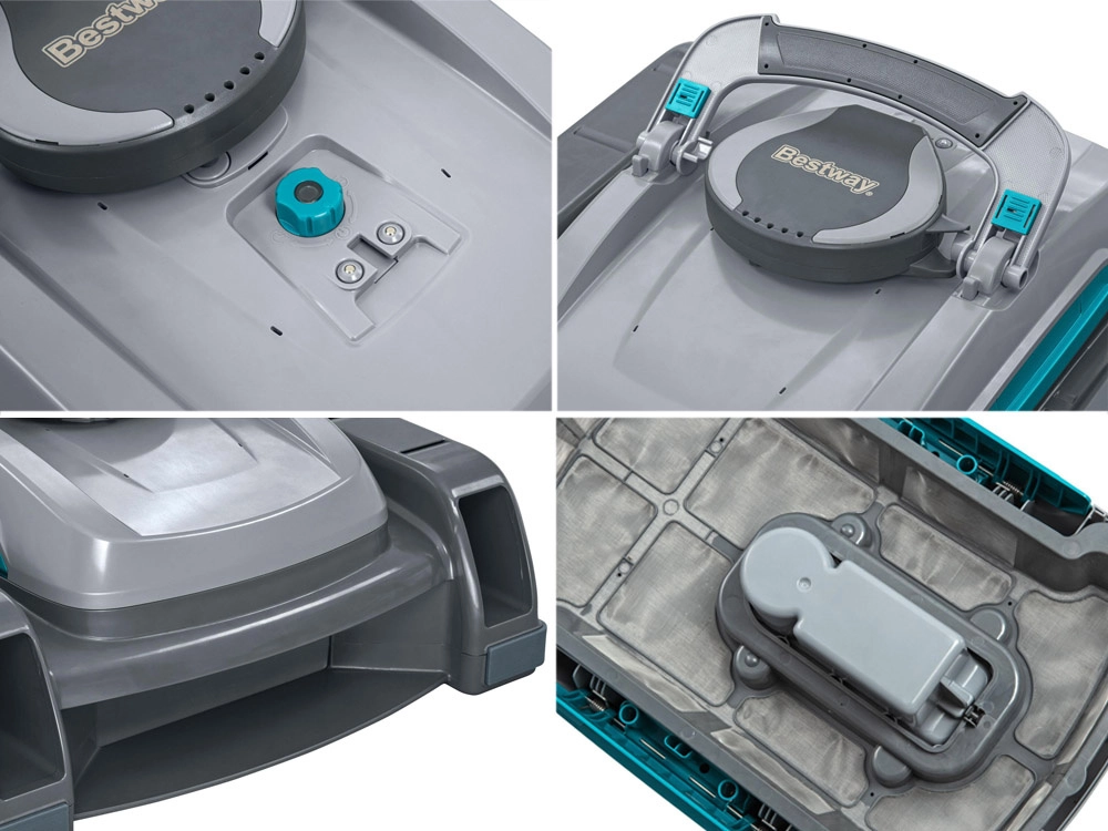 BESTWAY Aquatronix Pro G300 est un robot sans fil 2-en-1 moderne et entièrement automatique qui nettoie à la fois le fond de la piscine et la surface de l’eau. Grâce à sa batterie intégrée, il fonctionne jusqu’à 120 minutes, sans câbles emmêlés. De grands paniers à débris (3,5 l pour le fond et 6 l pour la surface) et des capteurs intelligents pour un démarrage/arrêt automatiques garantissent un entretien pratique, sûr et efficace, en particulier pour les piscines hors-sol à fond plat.