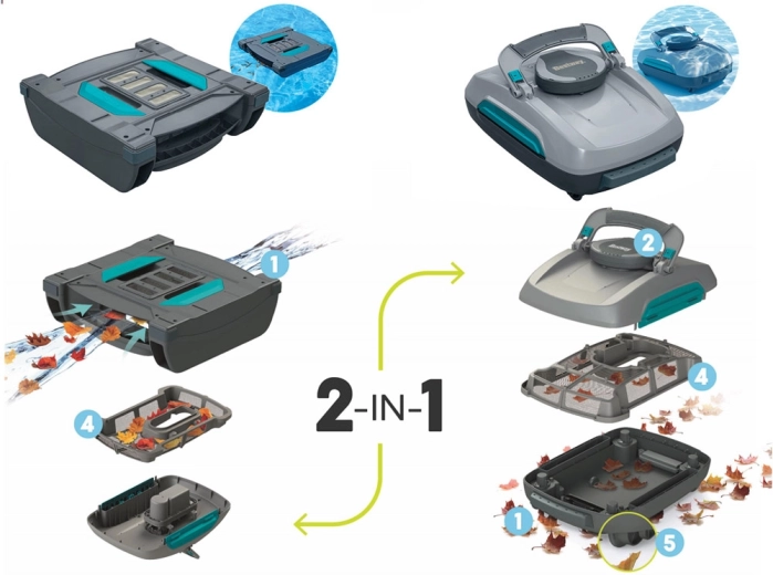 Des capteurs d’eau intelligents activent le robot lorsqu’il est immergé et l’éteignent une fois sorti de l’eau, protégeant ainsi le moteur. Recharge rapide de 3 à 4 heures et conception sans fil offrent une liberté totale de mouvement. Les paniers de grande capacité capturent feuilles, sable et insectes et se nettoient facilement grâce au filtre accessible par le dessus.