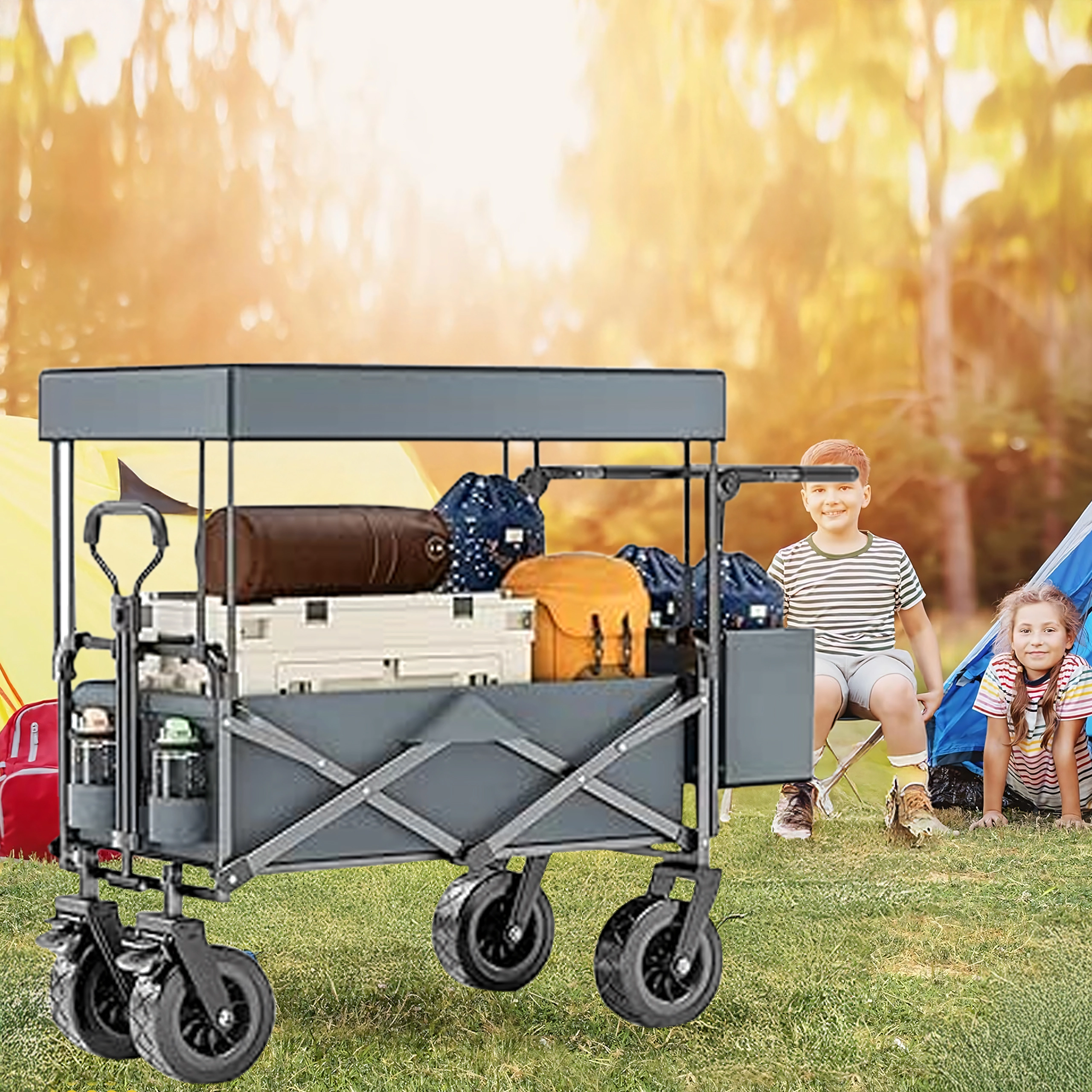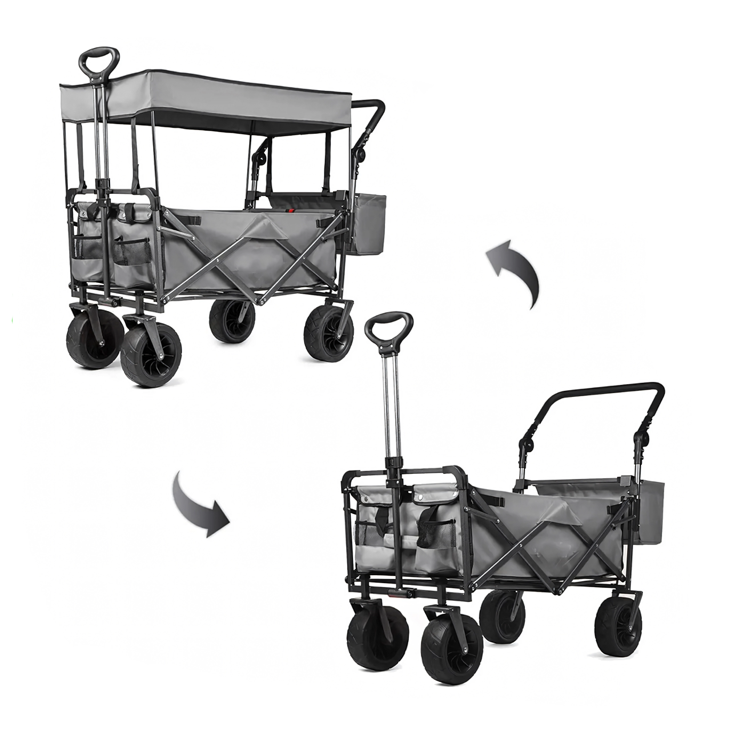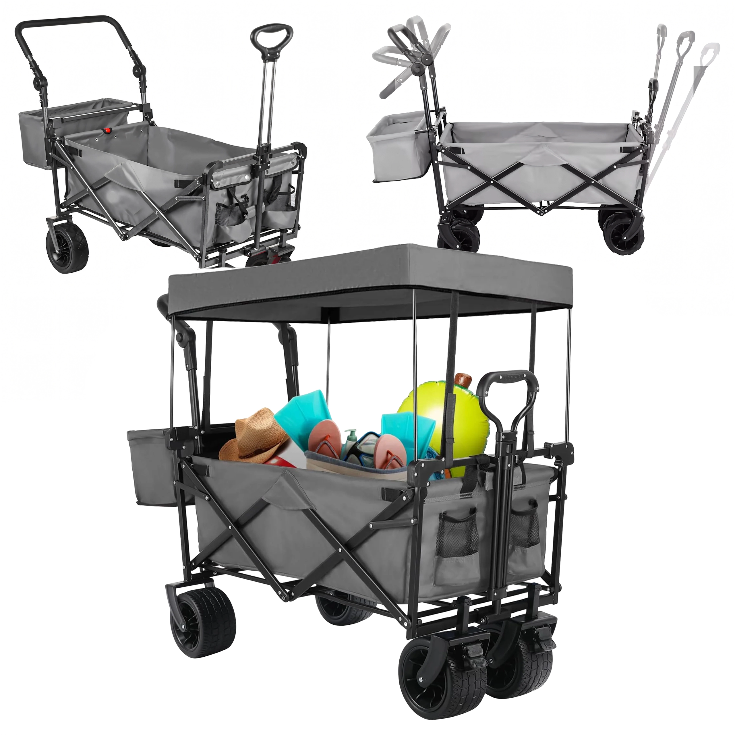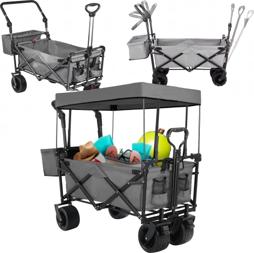 Grand chariot pliant de jardin et de plage avec dôme et roues XL