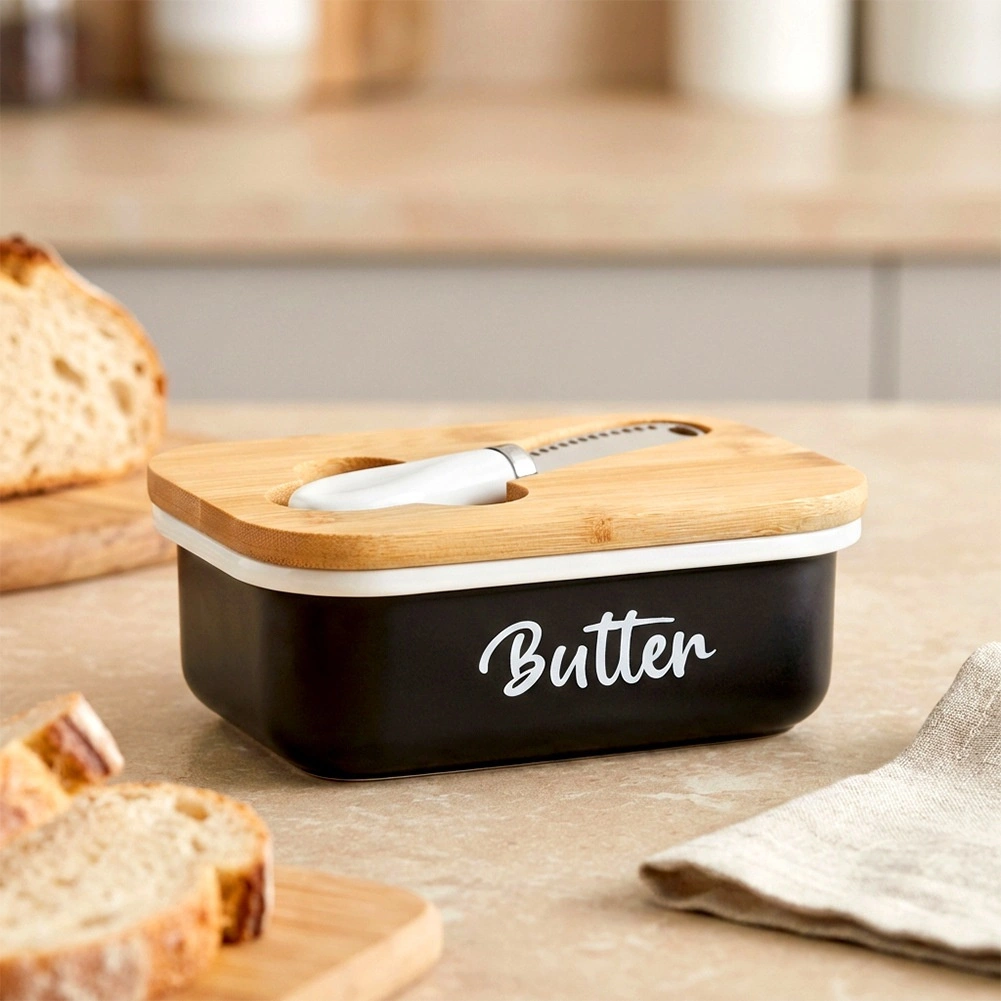 Le couvercle en bambou naturel aide à garder le beurre protégé et frais plus longtemps – idéal au réfrigérateur comme sur la table.