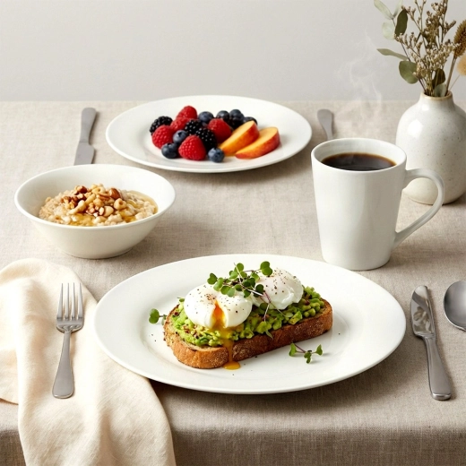 Une porcelaine de qualité avec glaçure lisse, intemporelle, facile à assortir et résistante à un usage quotidien.