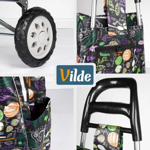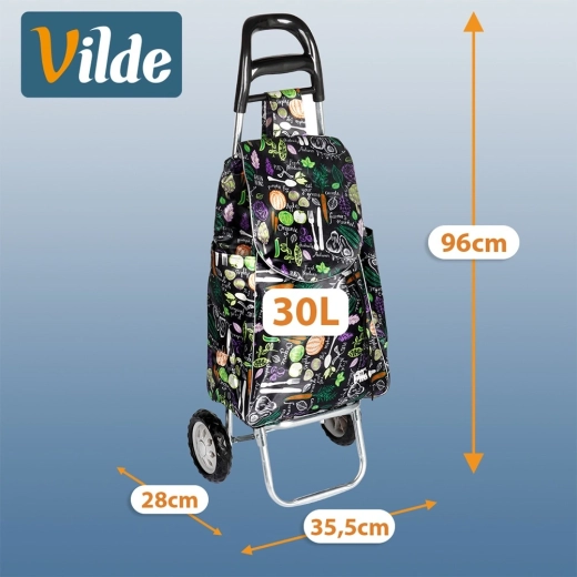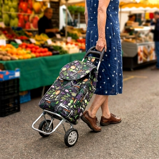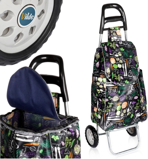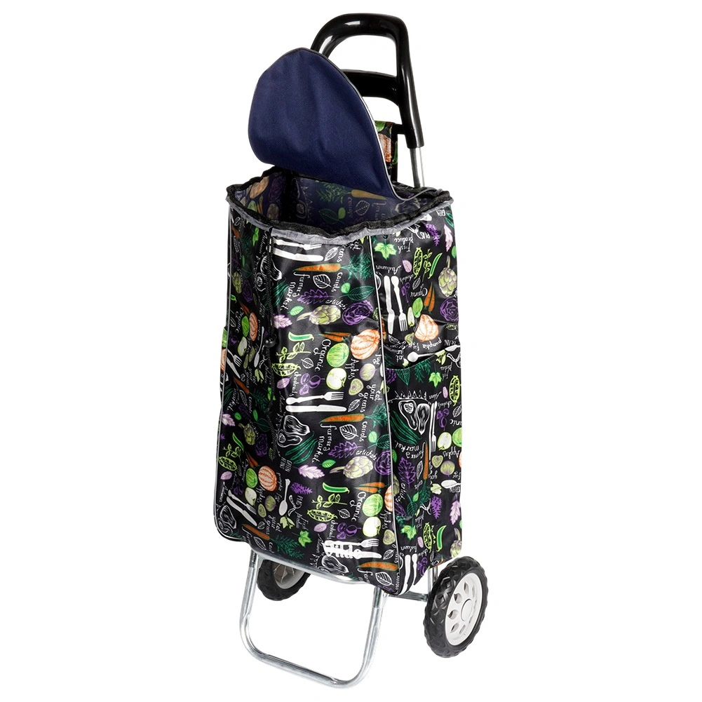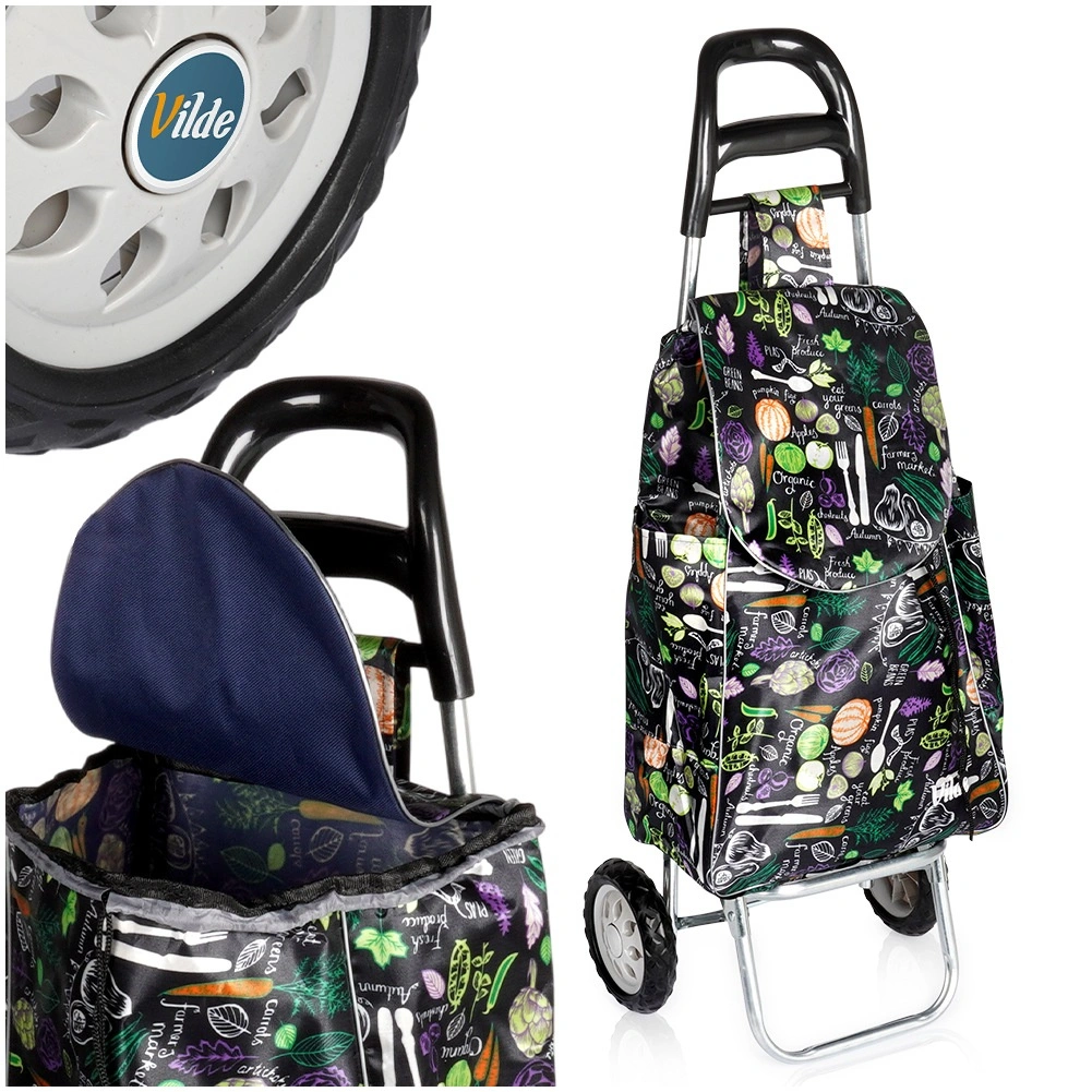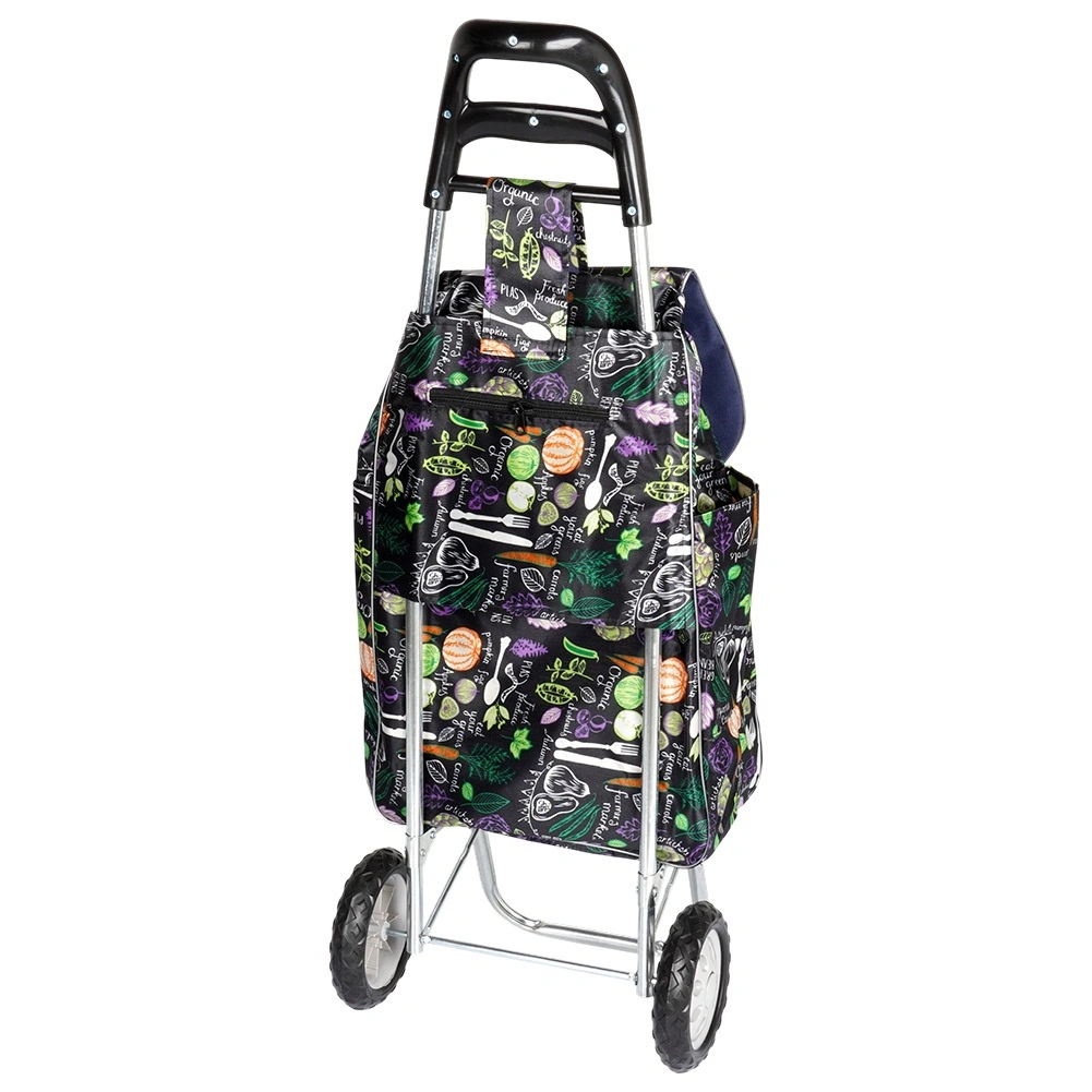 Chariot de courses avec sac 30 l – noir à motif légumes