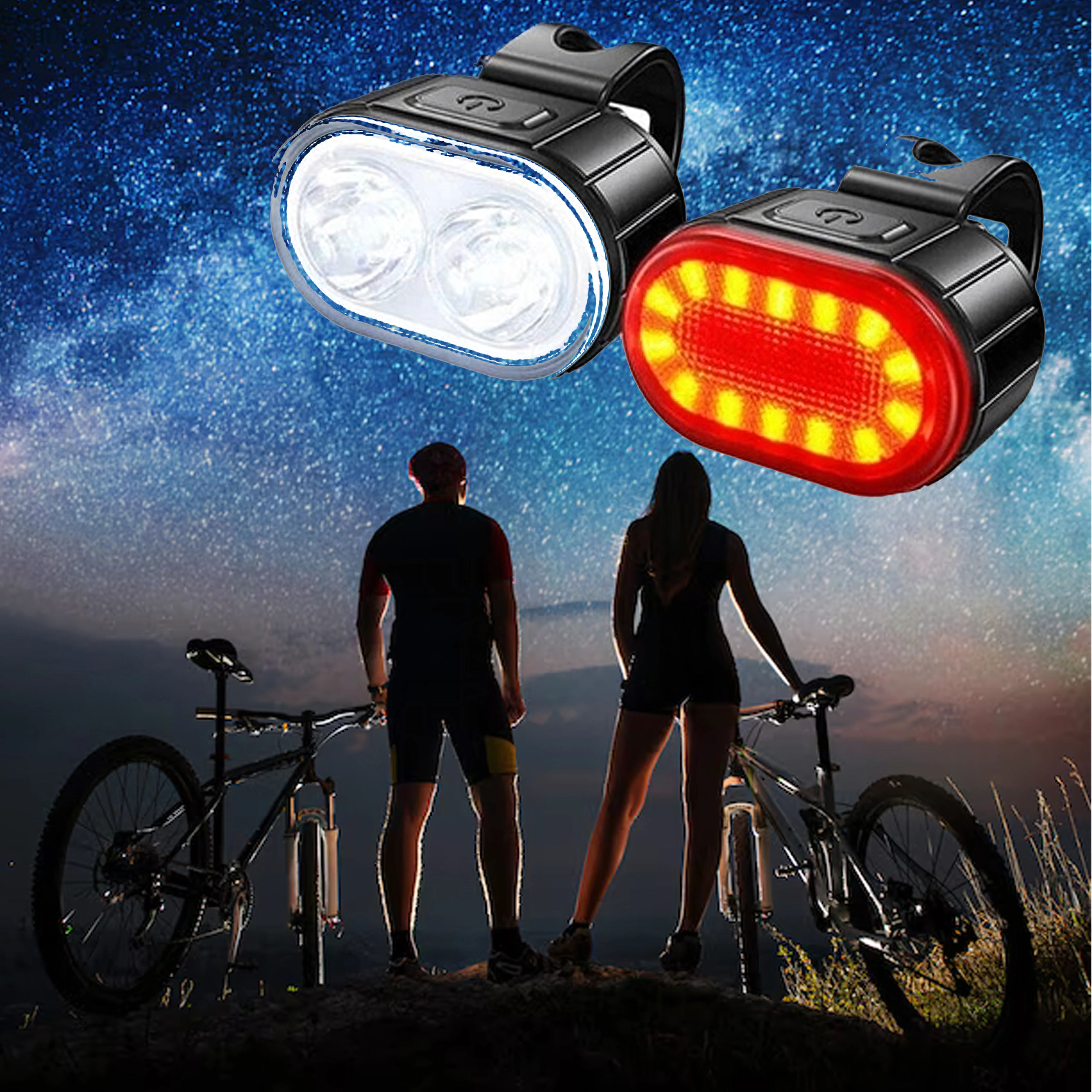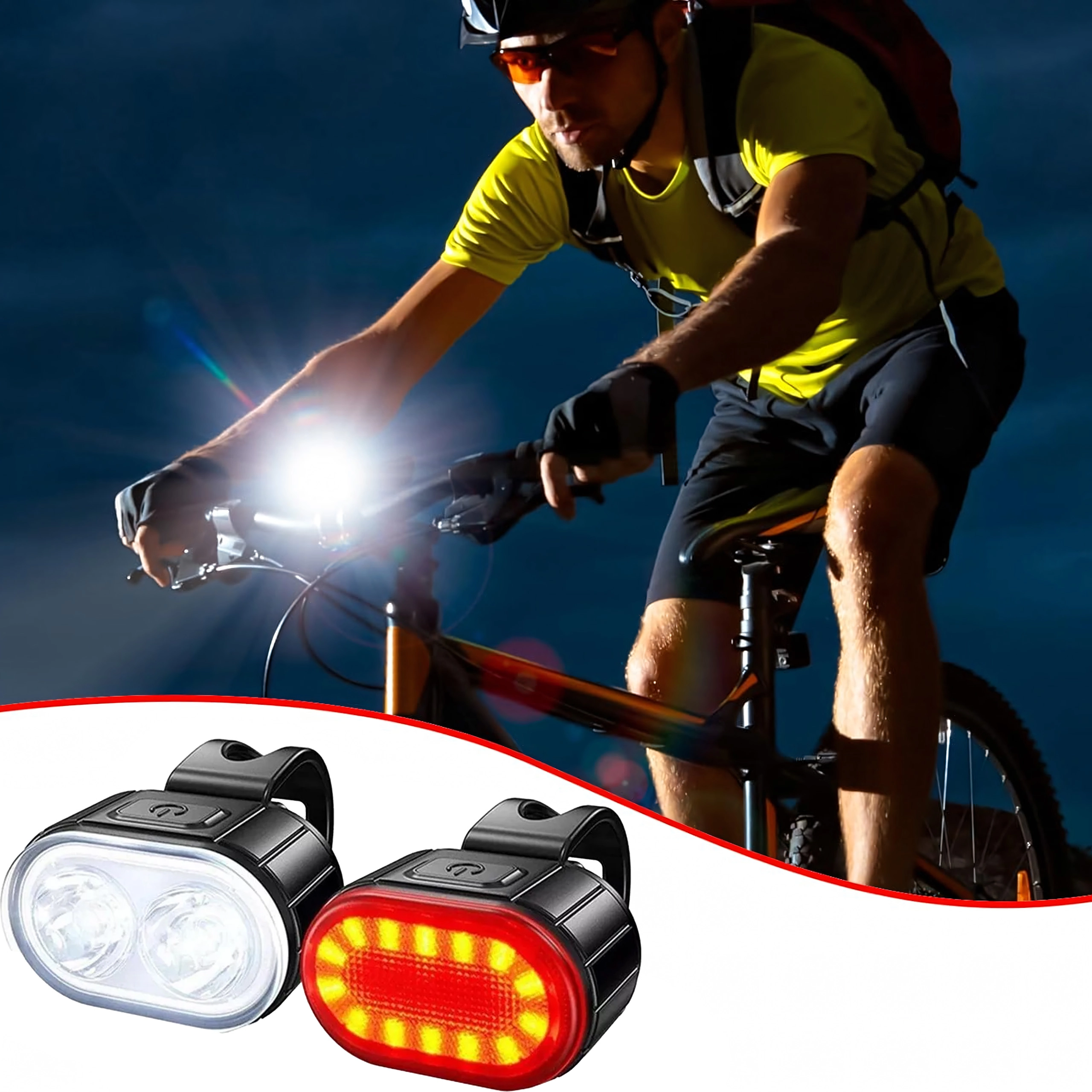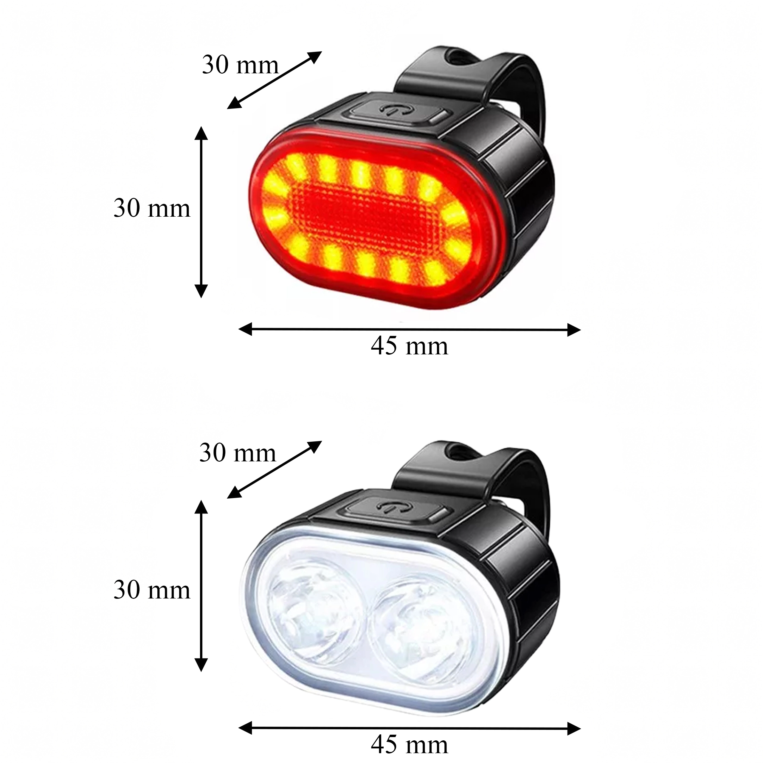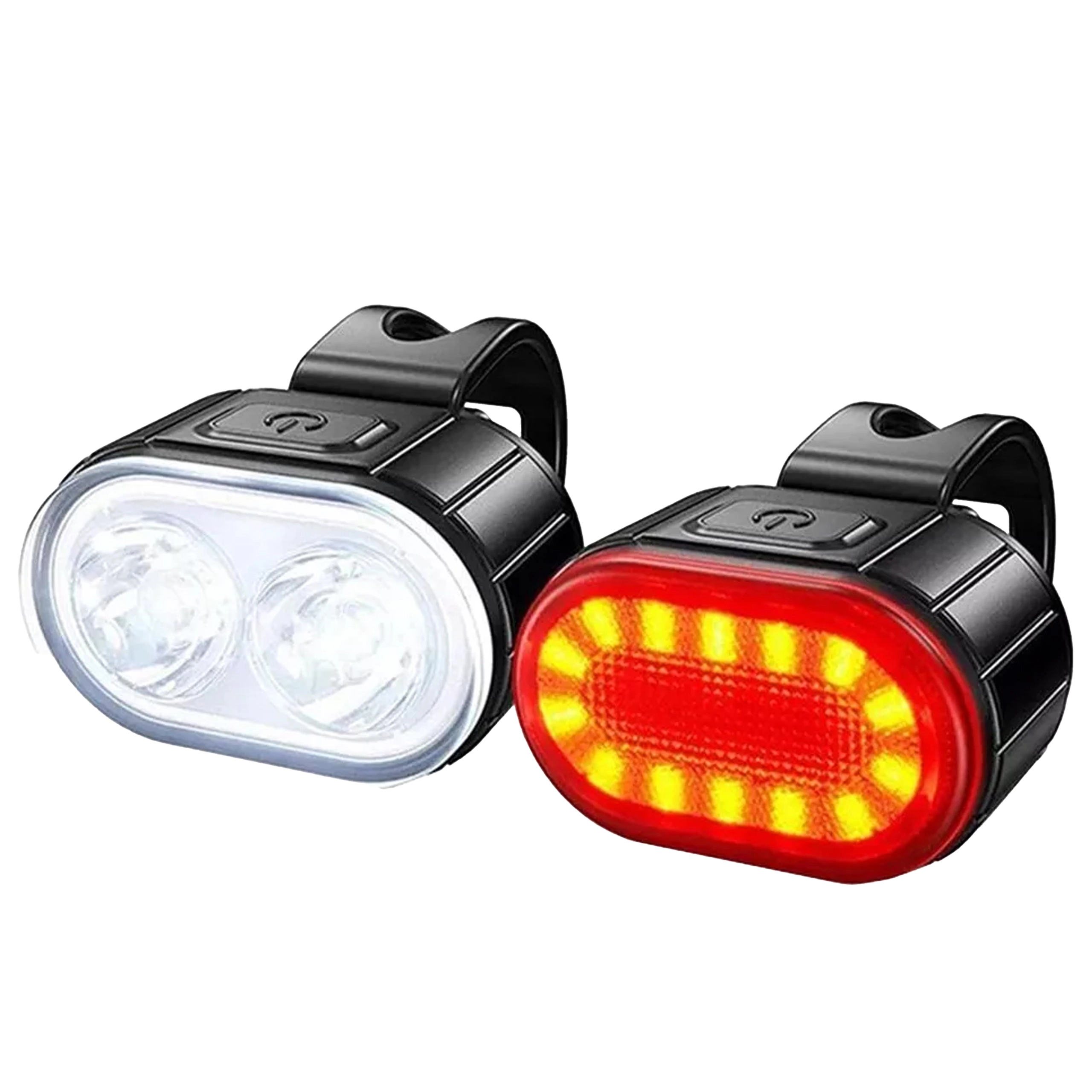 Ce kit universel d’éclairages pour vélo associe un puissant phare avant à double LED pour éclairer la route et un feu arrière rouge pour une visibilité maximale. Le corps compact avec sangle en caoutchouc se monte en quelques secondes, sans outil, sur la plupart des guidons et tiges de selle.