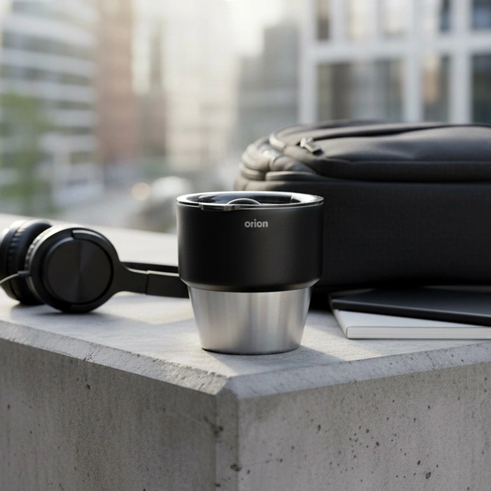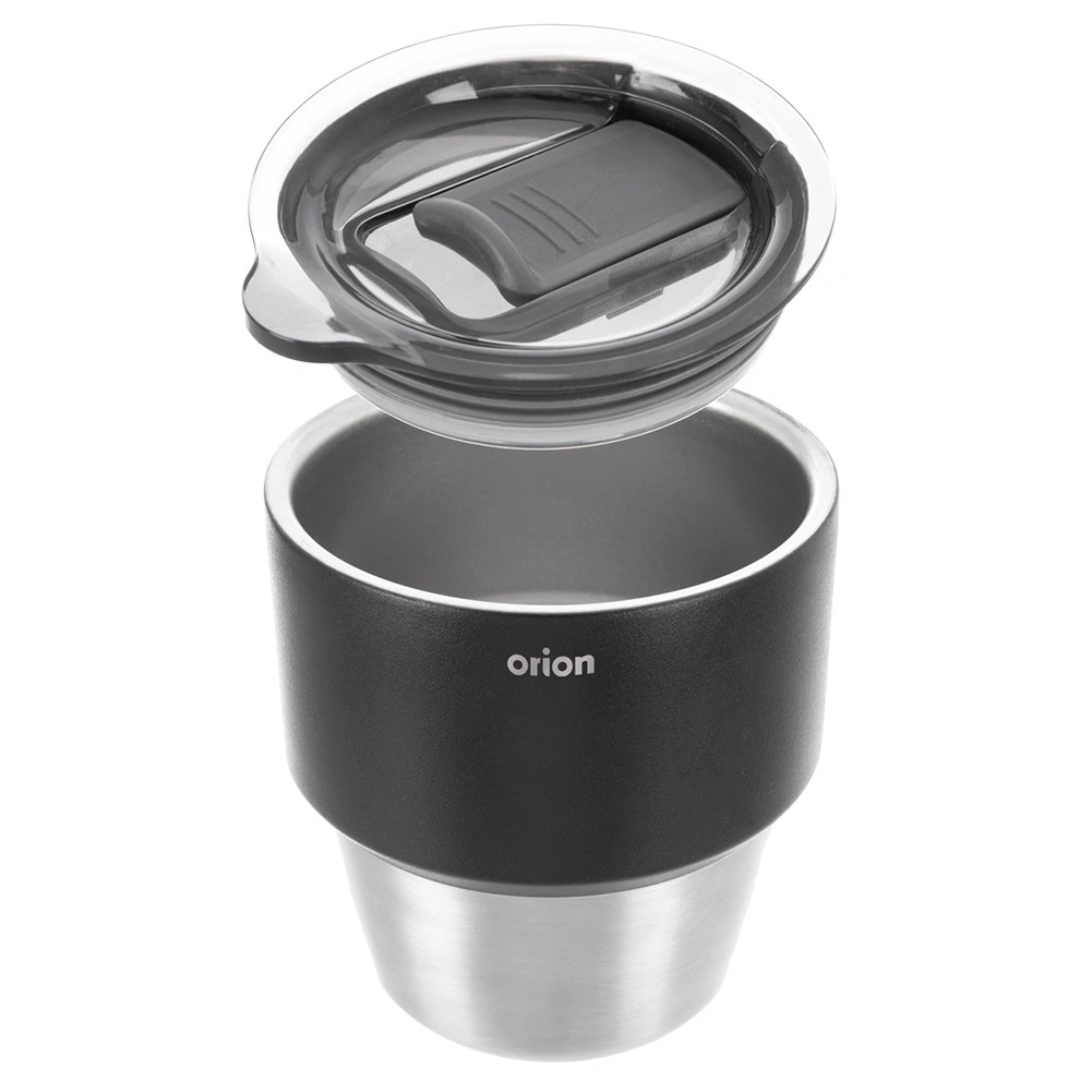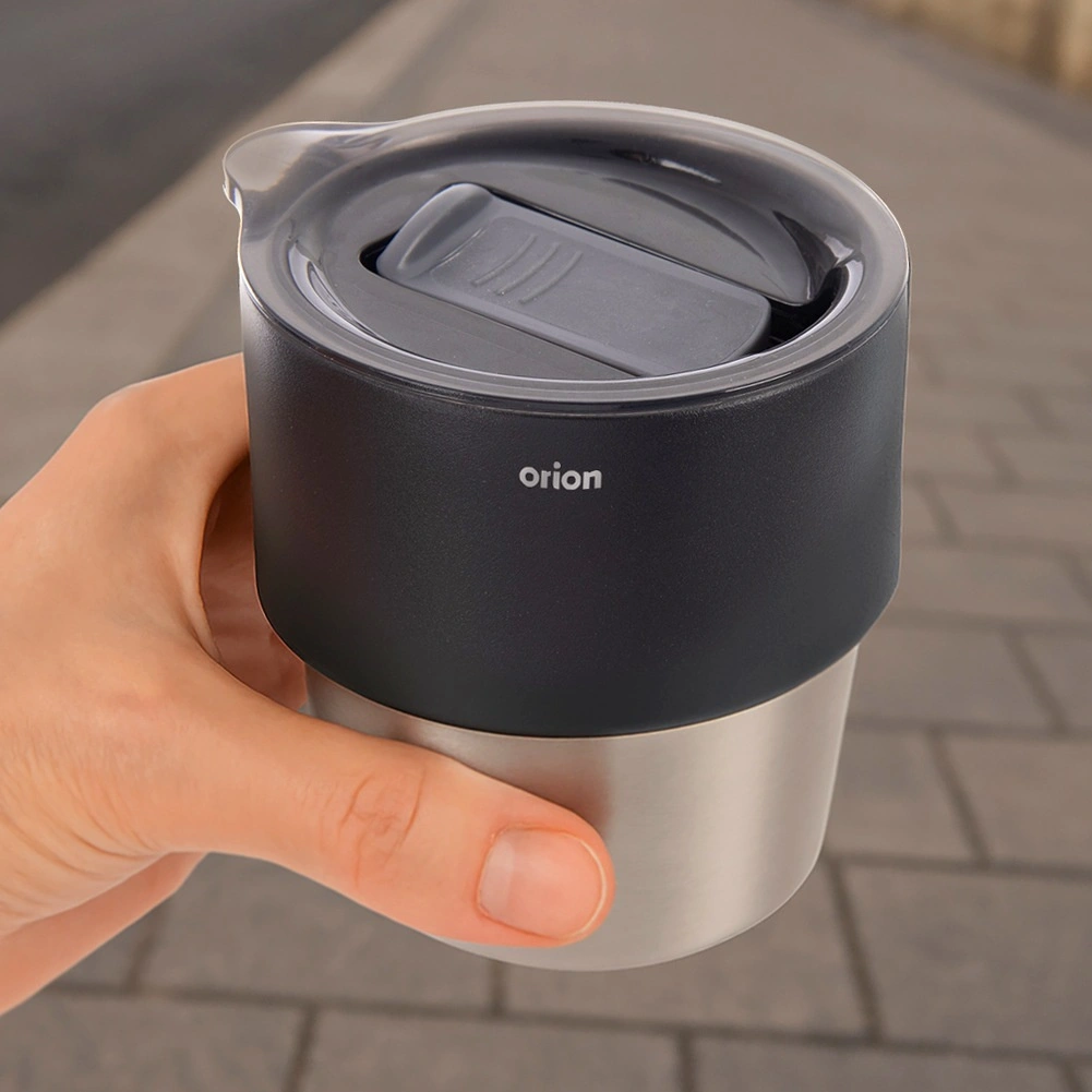 La partie intérieure est fabriquée en acier inoxydable de haute qualité, l’extérieure en combinaison d’acier inoxydable et de plastique résistant de couleur noire. Le couvercle à ouverture coulissante permet de boire confortablement et minimise le risque de renversement – idéal en voiture et dans l’agitation urbaine. Pour des performances optimales, préchauffez la tasse avec de l’eau chaude (pour les boissons chaudes) ou rafraîchissez-la avec de l’eau froide (pour les boissons froides) avant utilisation.