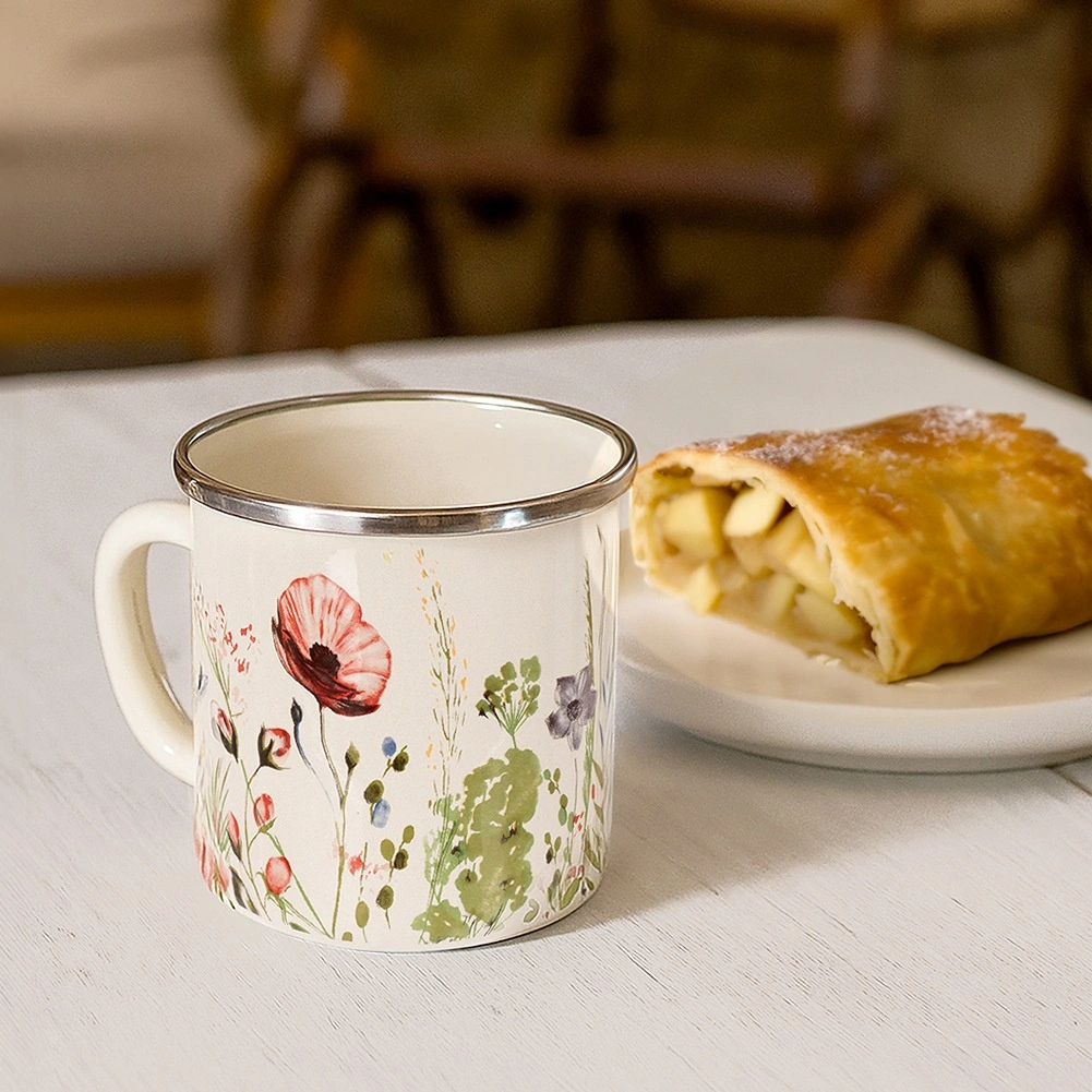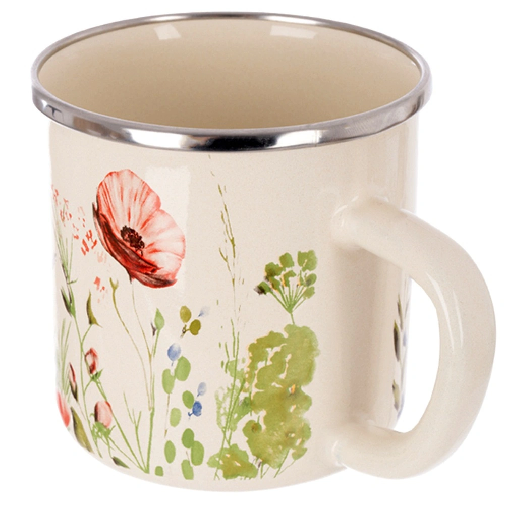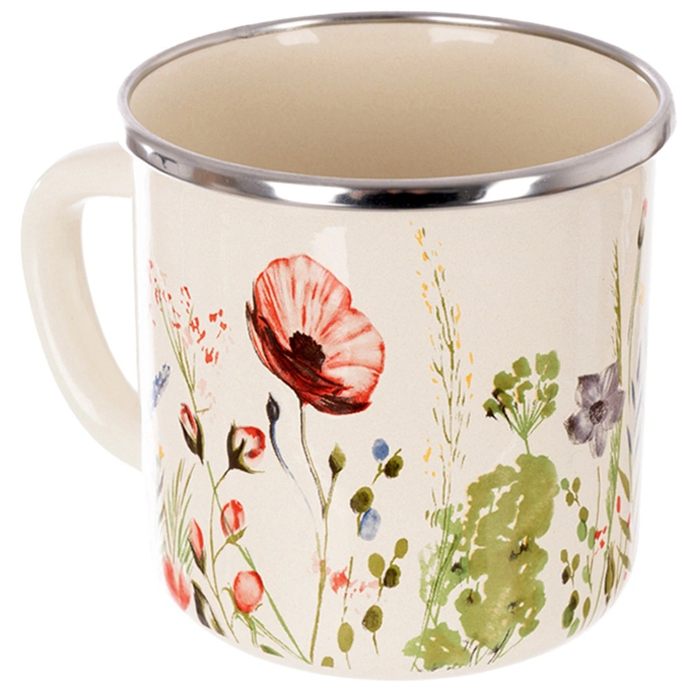 Découvrez la tasse émaillée crème polyvalente au motif de coquelicots, idéale pour les boissons chaudes comme froides. Le corps robuste en acier émaillé et le bord en inox assurent longévité, confort à la dégustation et meilleure résistance à la chaleur. Grâce à ses dimensions compactes, elle est parfaite pour la cuisine, la maison de campagne, le camping et la randonnée.