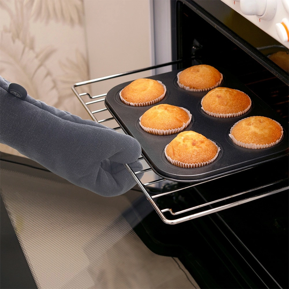 La structure en coton fortement rembourrée protège efficacement les mains lors de la manipulation de plaques et de récipients chauds, tandis que la forme avec pouce assure une prise sûre.