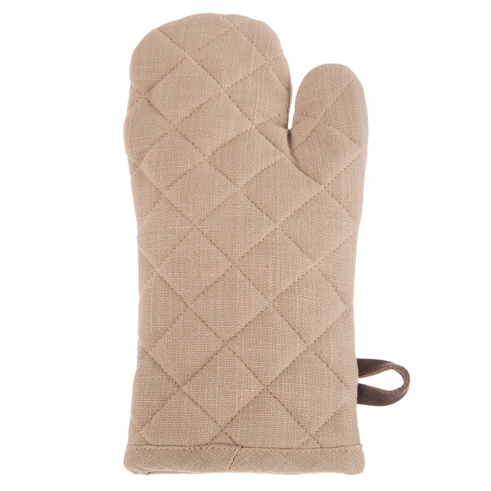 Ce gant de cuisine en coton marron (17,5 × 32 cm) est conçu pour une manipulation sûre des plaques et ustensiles brûlants. Sa coupe universelle convient aux deux mains et le rembourrage moelleux assure une prise ferme et un grand confort.