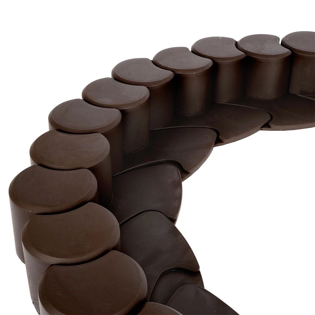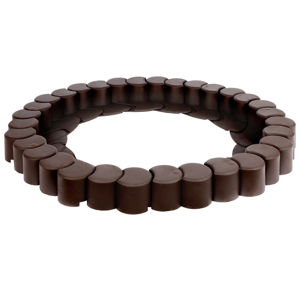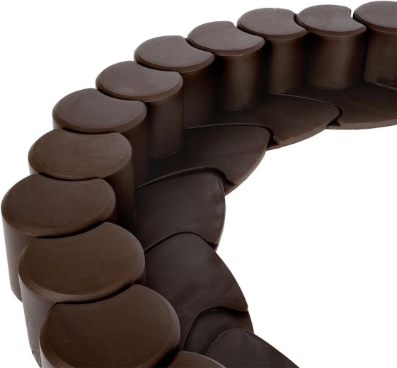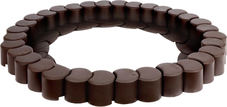 Palissade de jardin décorative de couleur marron, longueur totale de 4,1 m composée de 32 modules, idéale pour séparer pelouse et massifs. Elle offre une installation facile, un façonnage flexible en arcs et en cercles et une résistance au gel, aux UV et à la pluie. Une rampe d’accès pour la tondeuse facilite l’entretien des bords et des guides intégrés pour câble ou tuyau dissimulent les installations.