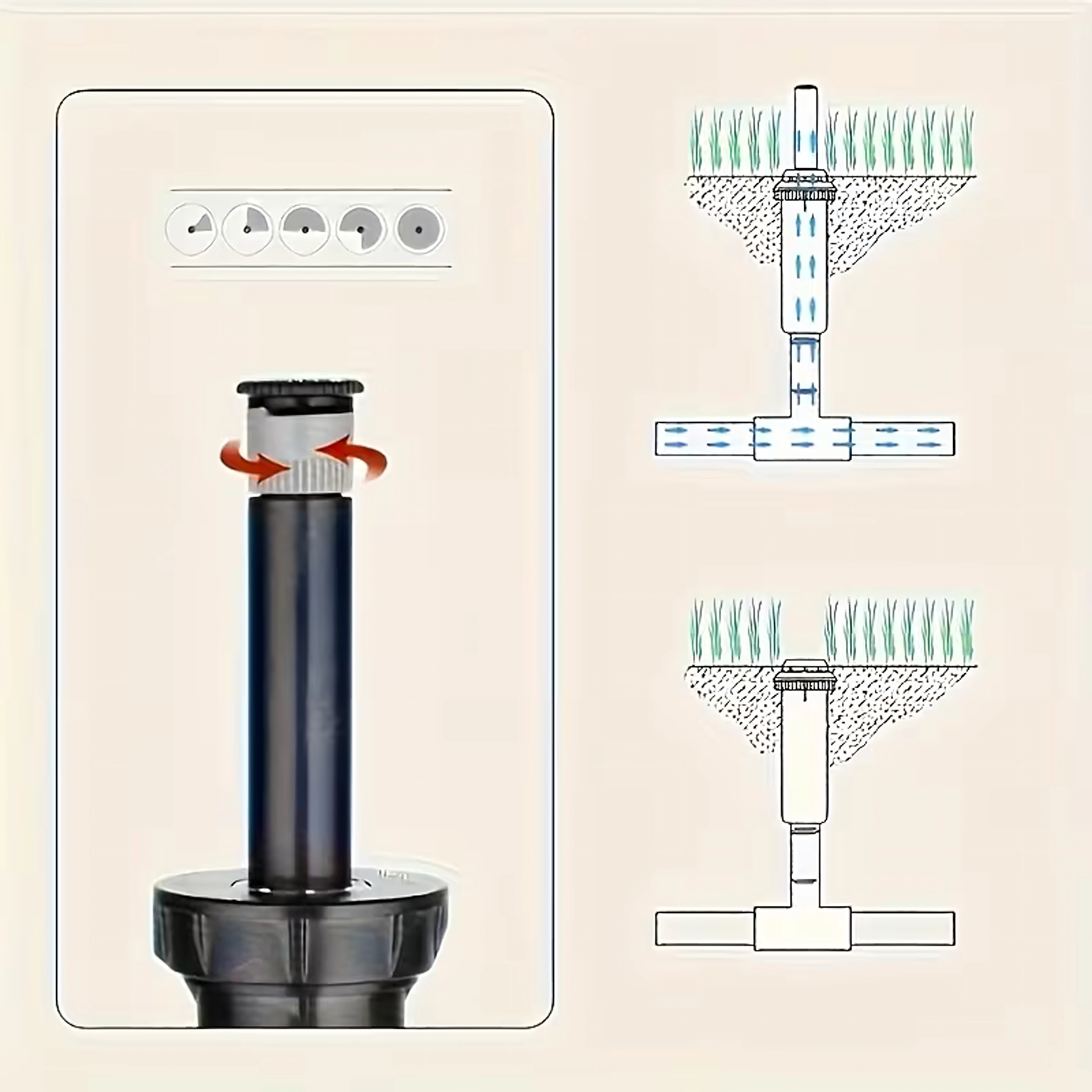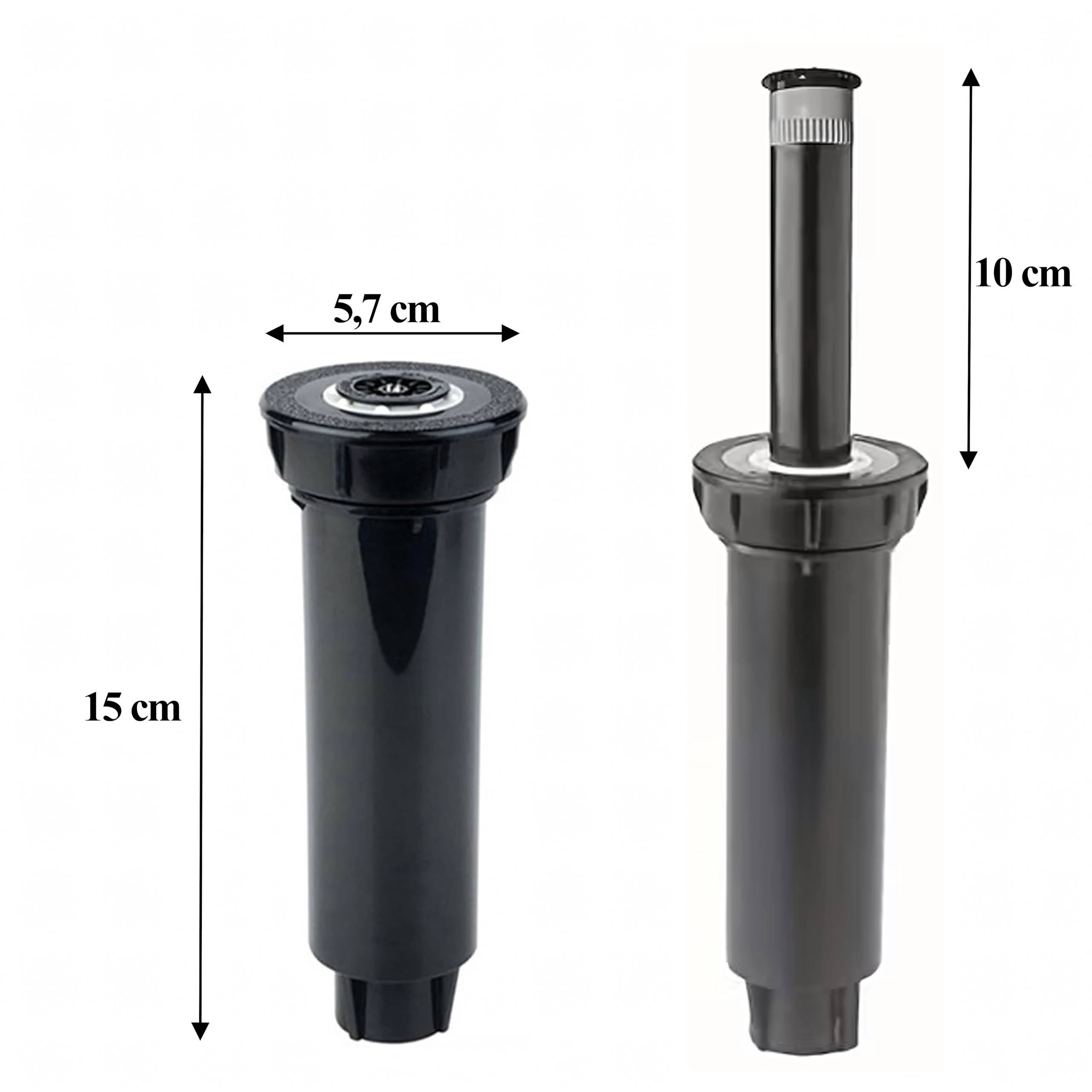 Le corps de l’arroseur se déploie sous la pression de l’eau puis se rétracte dans le sol après l’arrosage. Il réduit le risque de dommages et ne gêne pas la tonte.