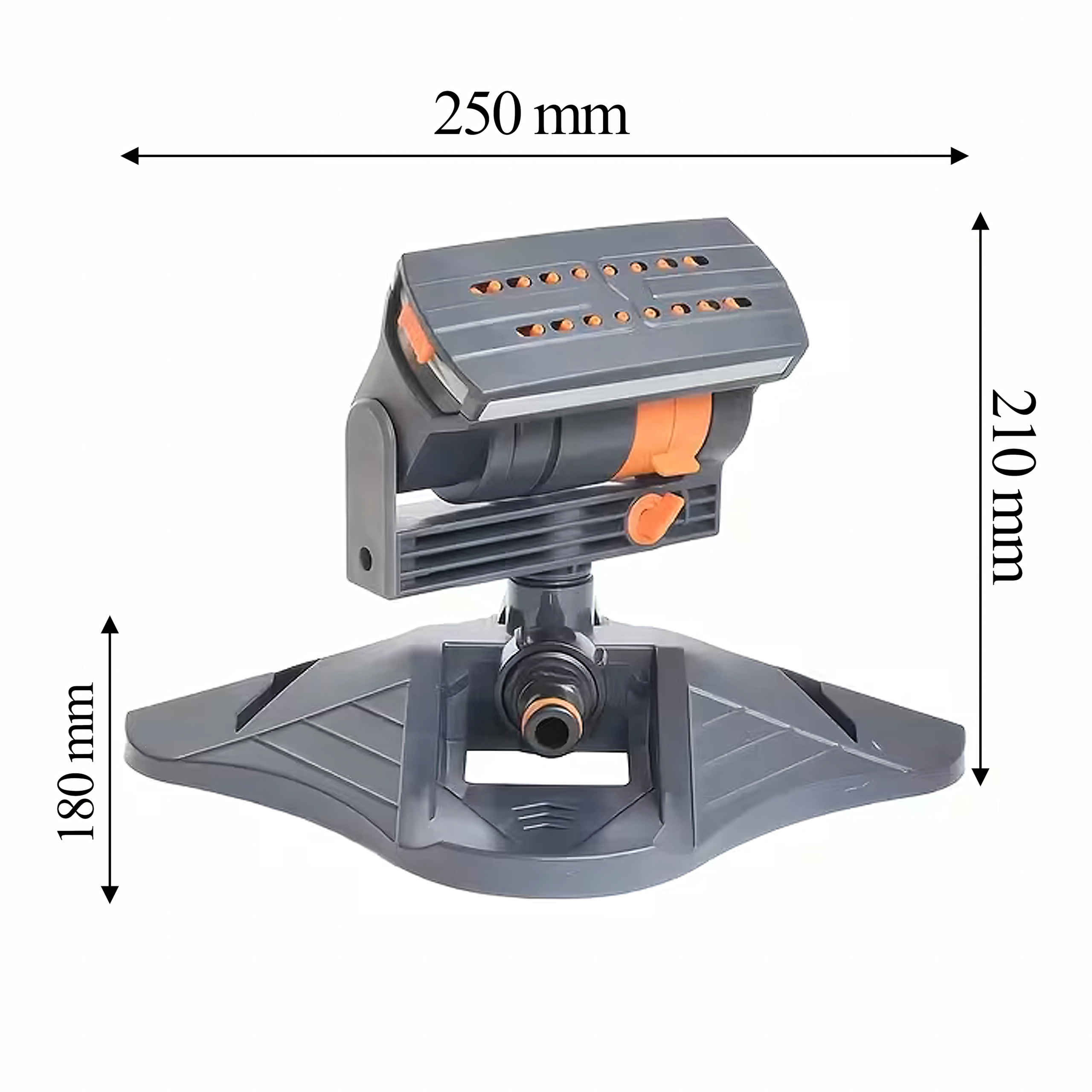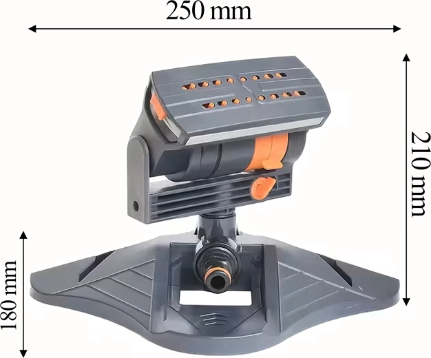 Une base robuste et stable maintient l’arroseur en place même sous une pression plus élevée. Le raccord de tuyau standard assure une connexion rapide sans outils. Grâce à sa commande simple, l’arroseur est idéal pour une irrigation régulière, uniforme et douce des petites comme des grandes surfaces.