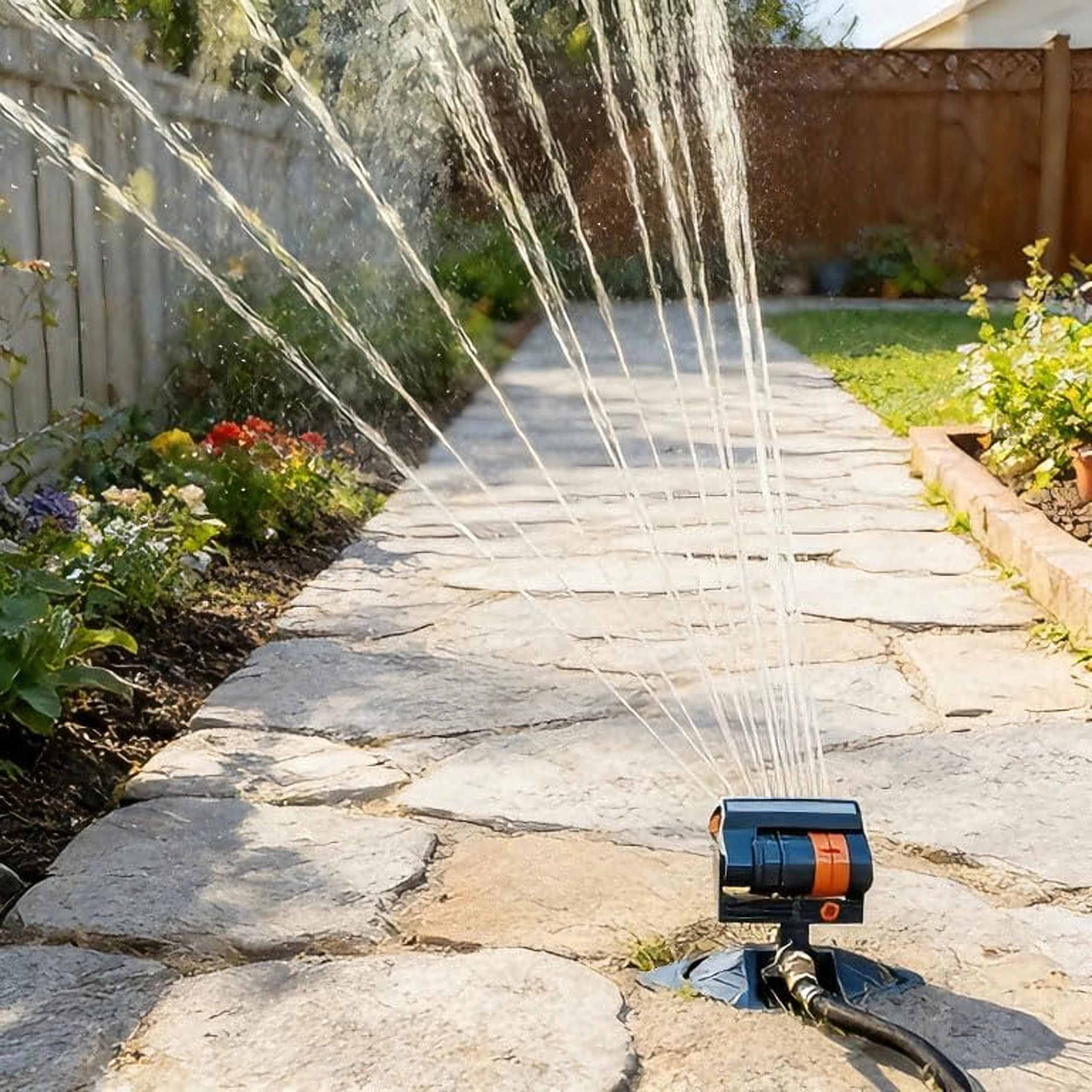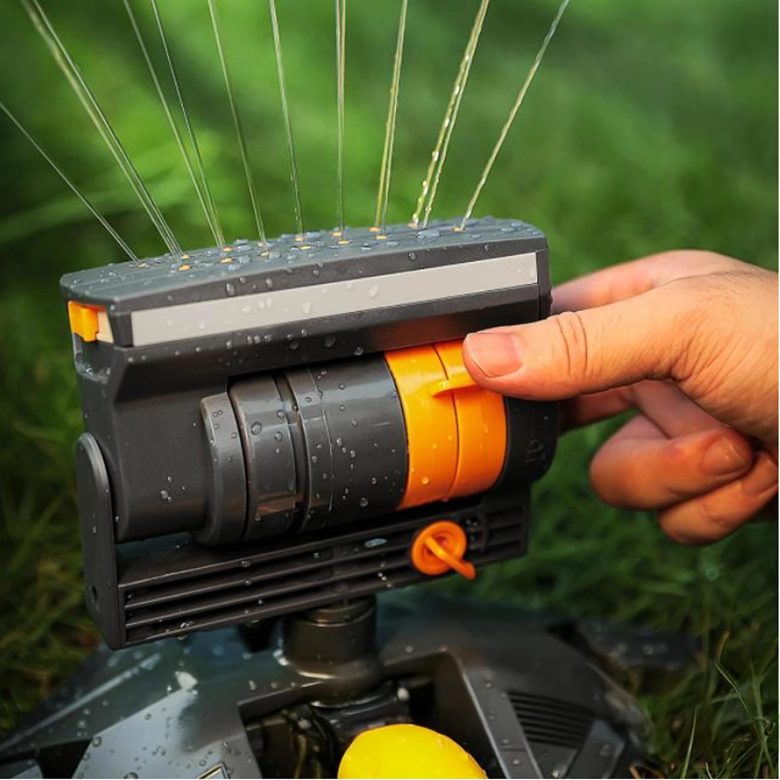 Grâce aux commandes, ajustez facilement la largeur, la direction et la portée du jet pour un ciblage précis selon la forme et la taille du jardin.