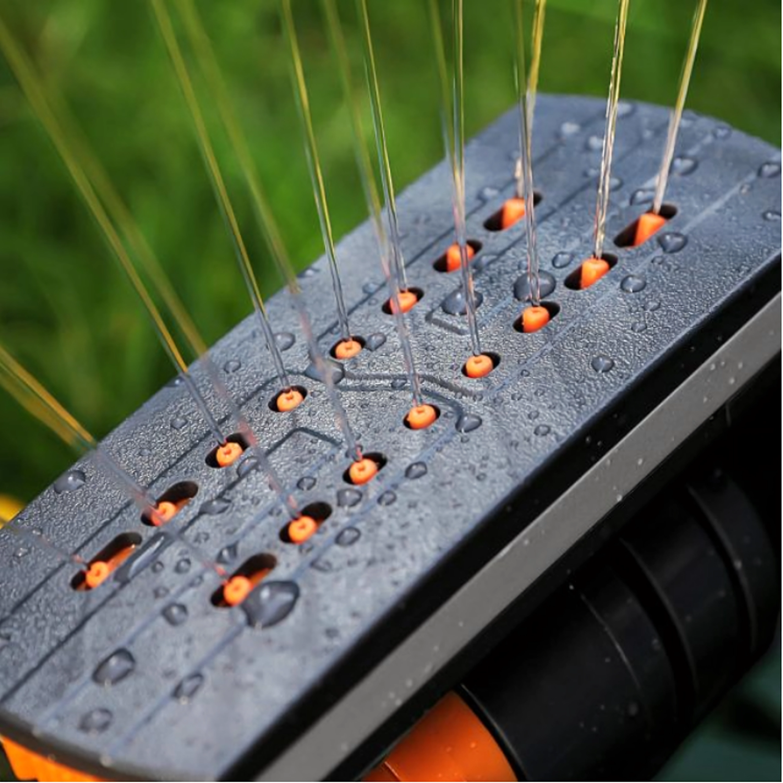 La tête à 16 buses génère plusieurs jets d’eau uniformes, arrosant efficacement de grandes surfaces sans engorgement.