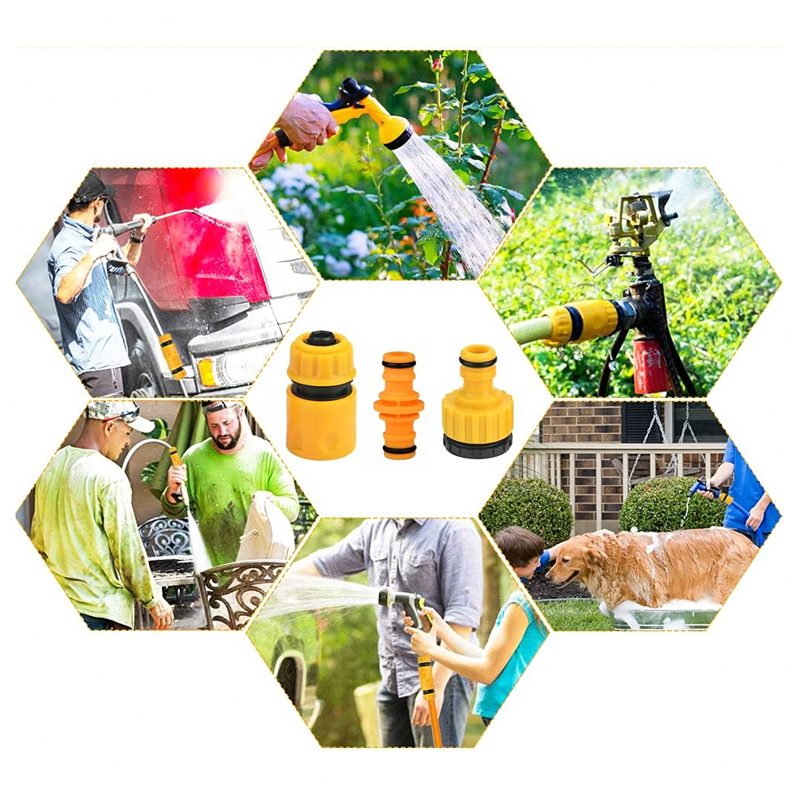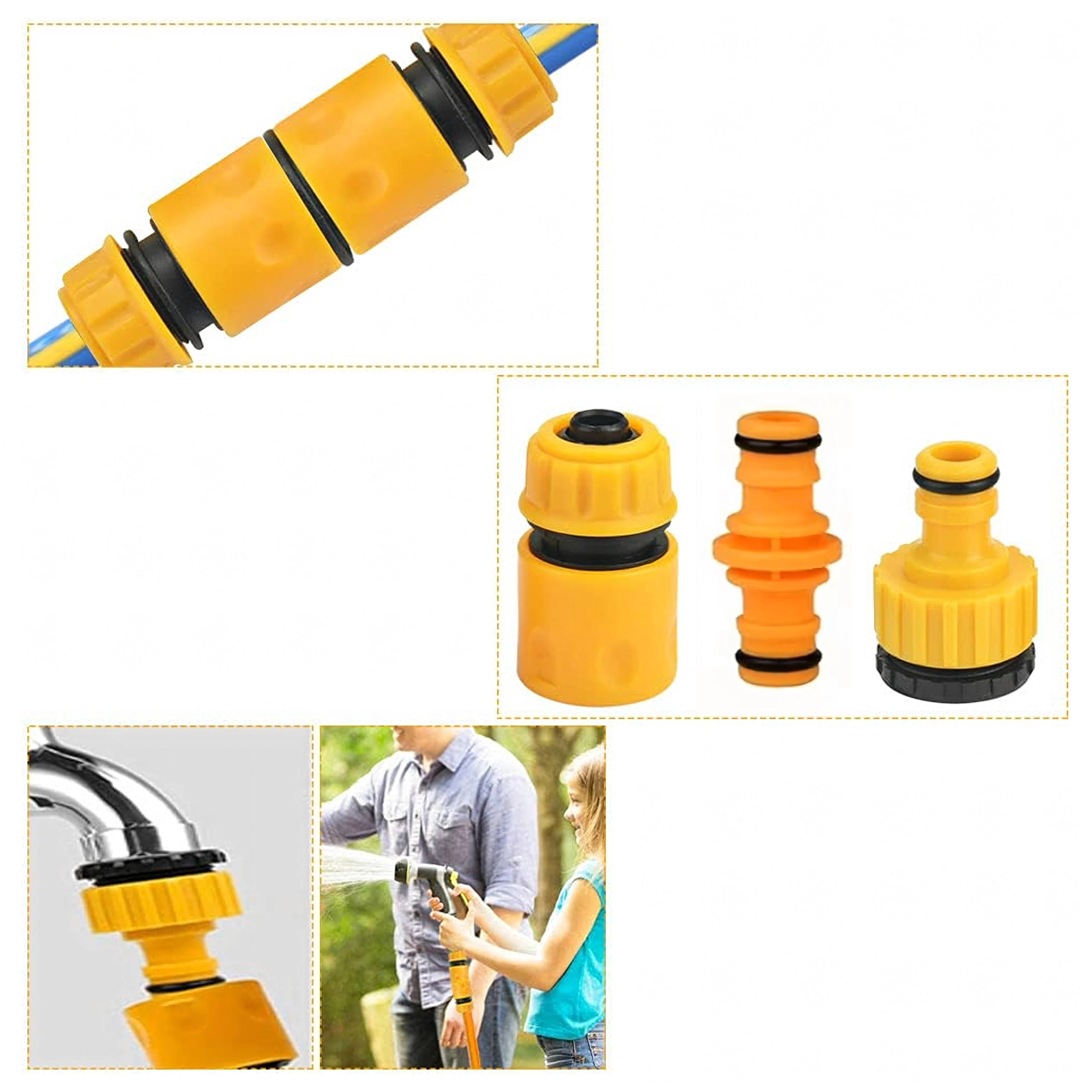 Les prises moletées facilitent le serrage même avec les mains mouillées, tandis que les joints toriques en caoutchouc assurent l’étanchéité et minimisent les fuites d’eau. La construction en plastique durable est légère, facile à entretenir et idéale pour l’arrosage quotidien du jardin, le lavage de la voiture et d’autres travaux extérieurs.