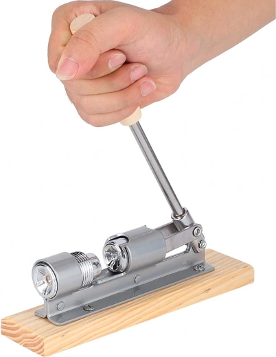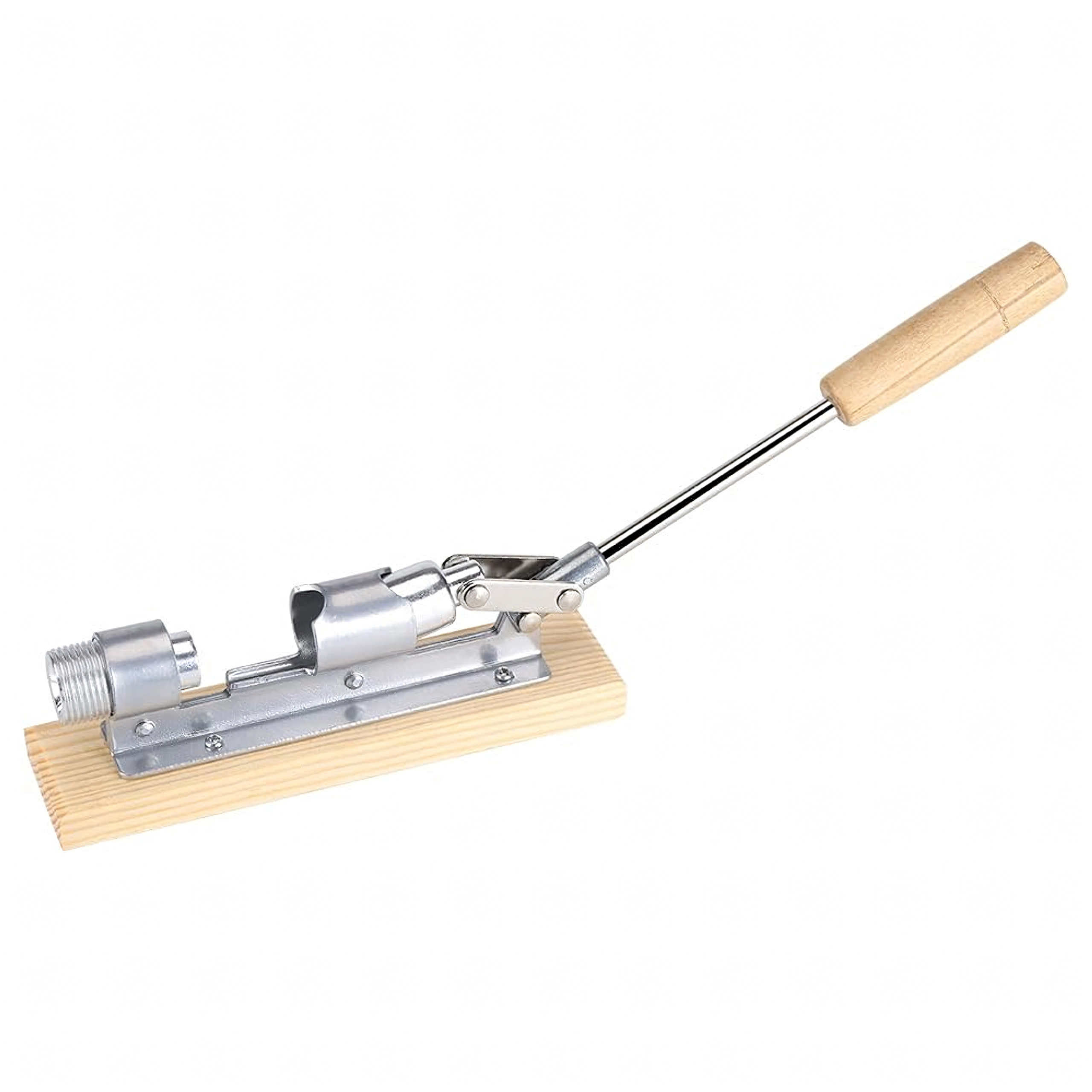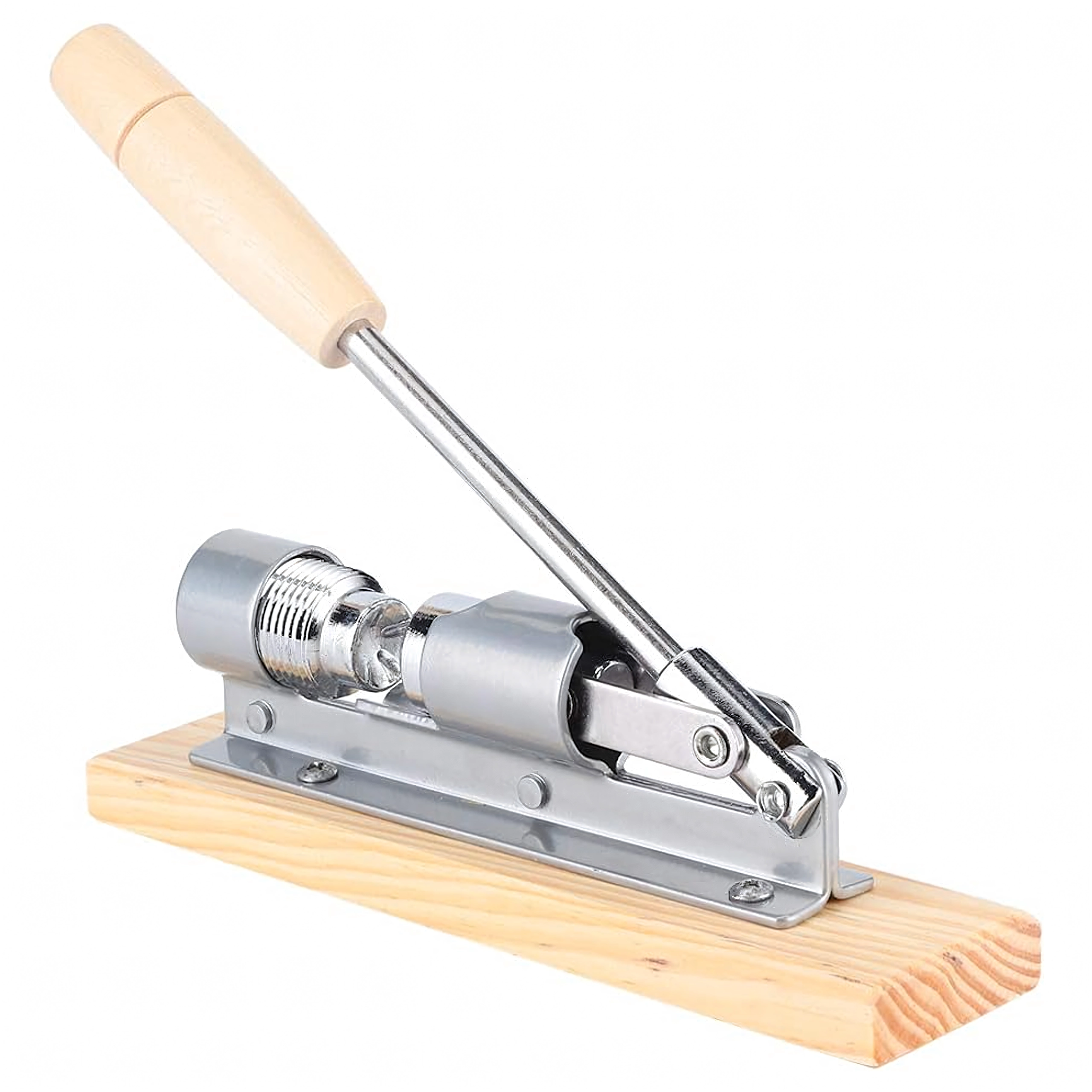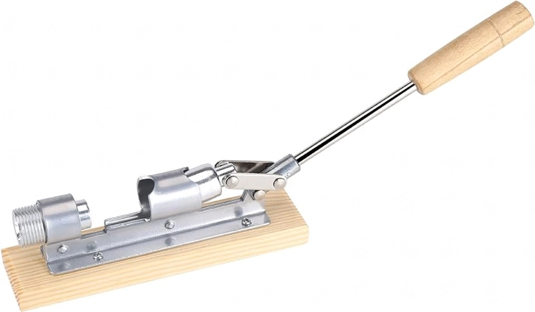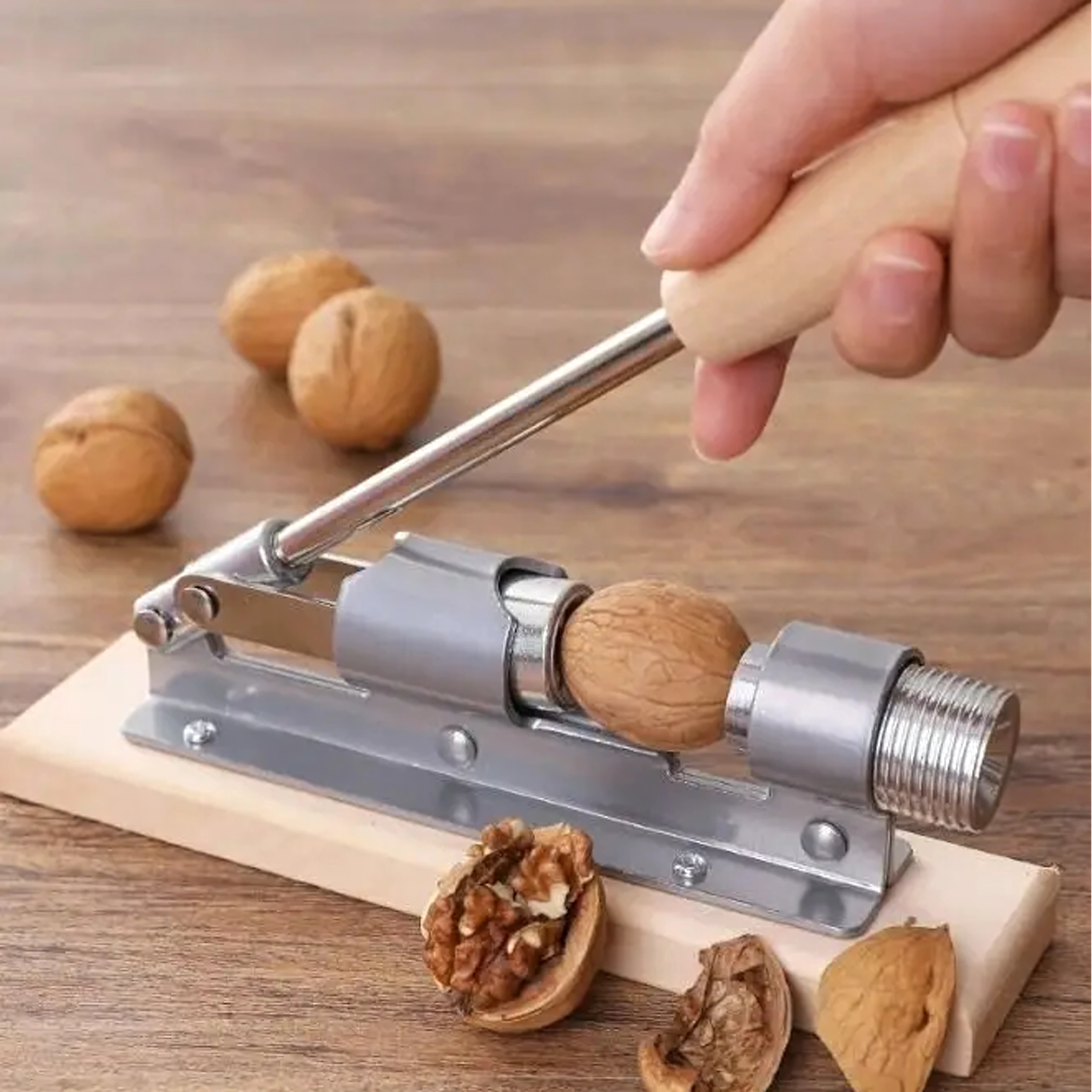 Le long bras de levier avec poignée en bois multiplie la force de serrage et permet de casser facilement même les coquilles dures sans solliciter les poignets.