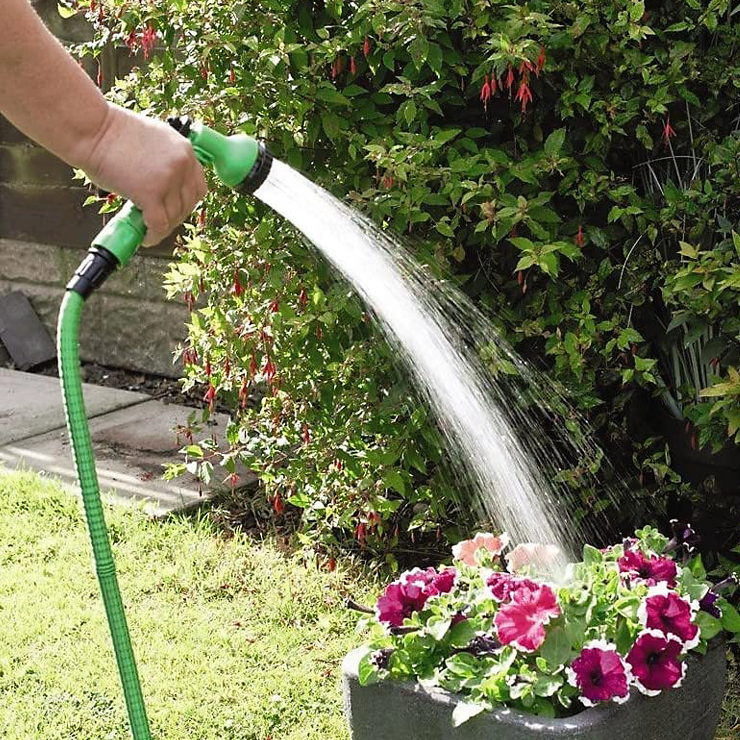 Profitez d’un arrosage confortable grâce à un tuyau qui s’allonge automatiquement jusqu’à trois fois sa longueur sous la pression de l’eau et se rétracte rapidement après vidange. La surface tissée résistante aide à prévenir l’abrasion et les pliures, tandis que le pistolet ergonomique à multiples modes vous permet d’adapter le débit, de la fine brume au jet puissant.