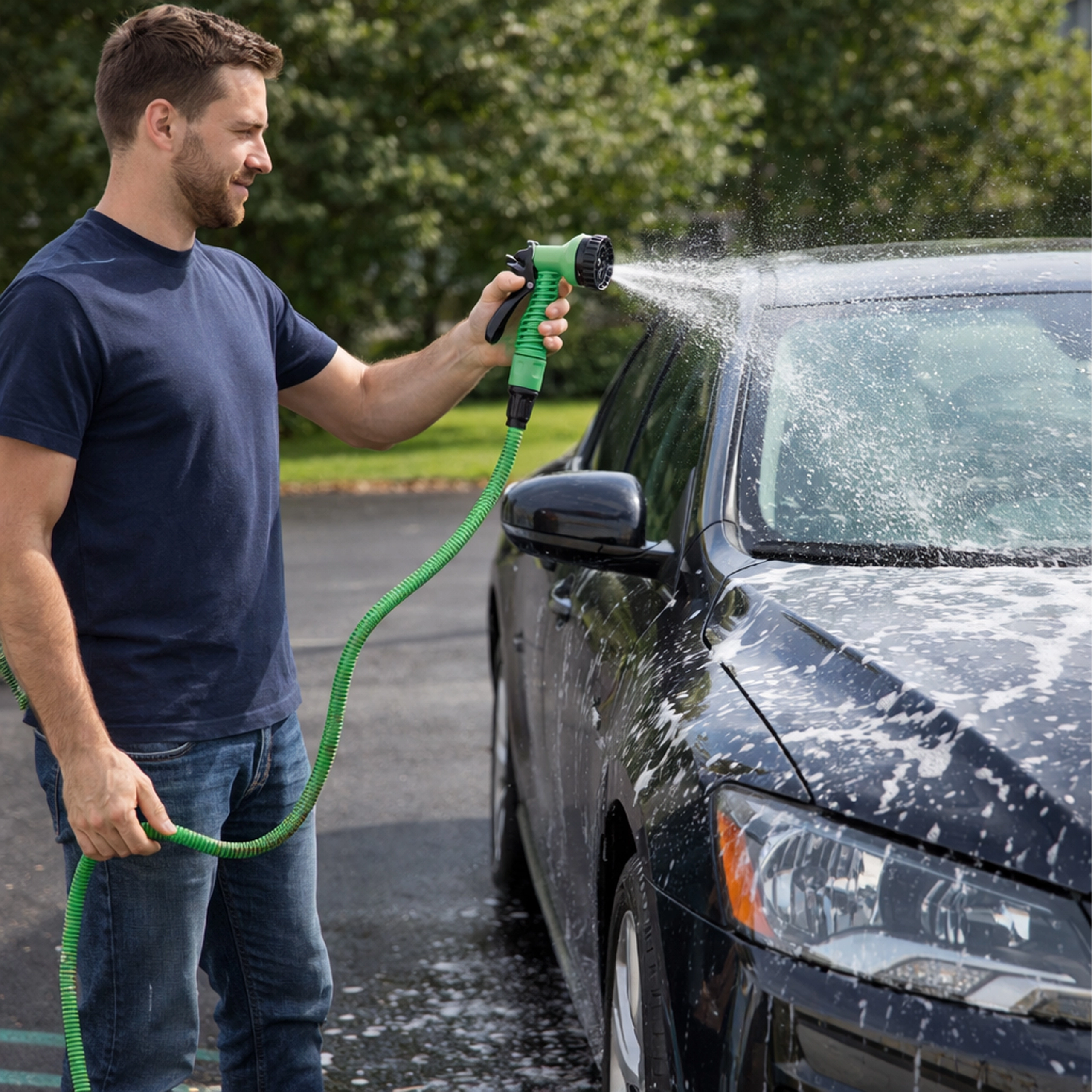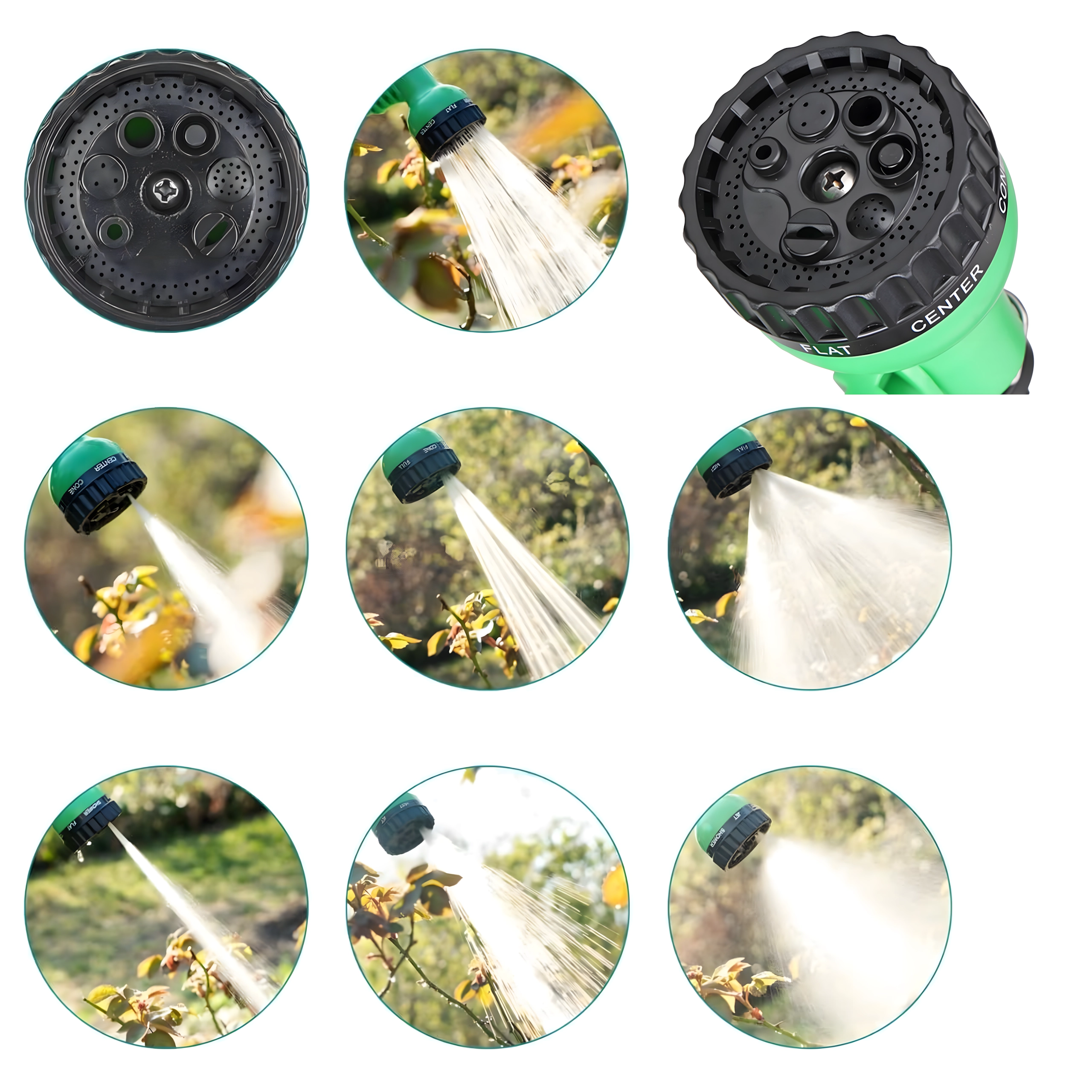 Buse ergonomique avec plusieurs modes de jet – de la douche fine au jet puissant – pour l’arrosage des plantes, le rinçage des terrasses et le lavage de la voiture.