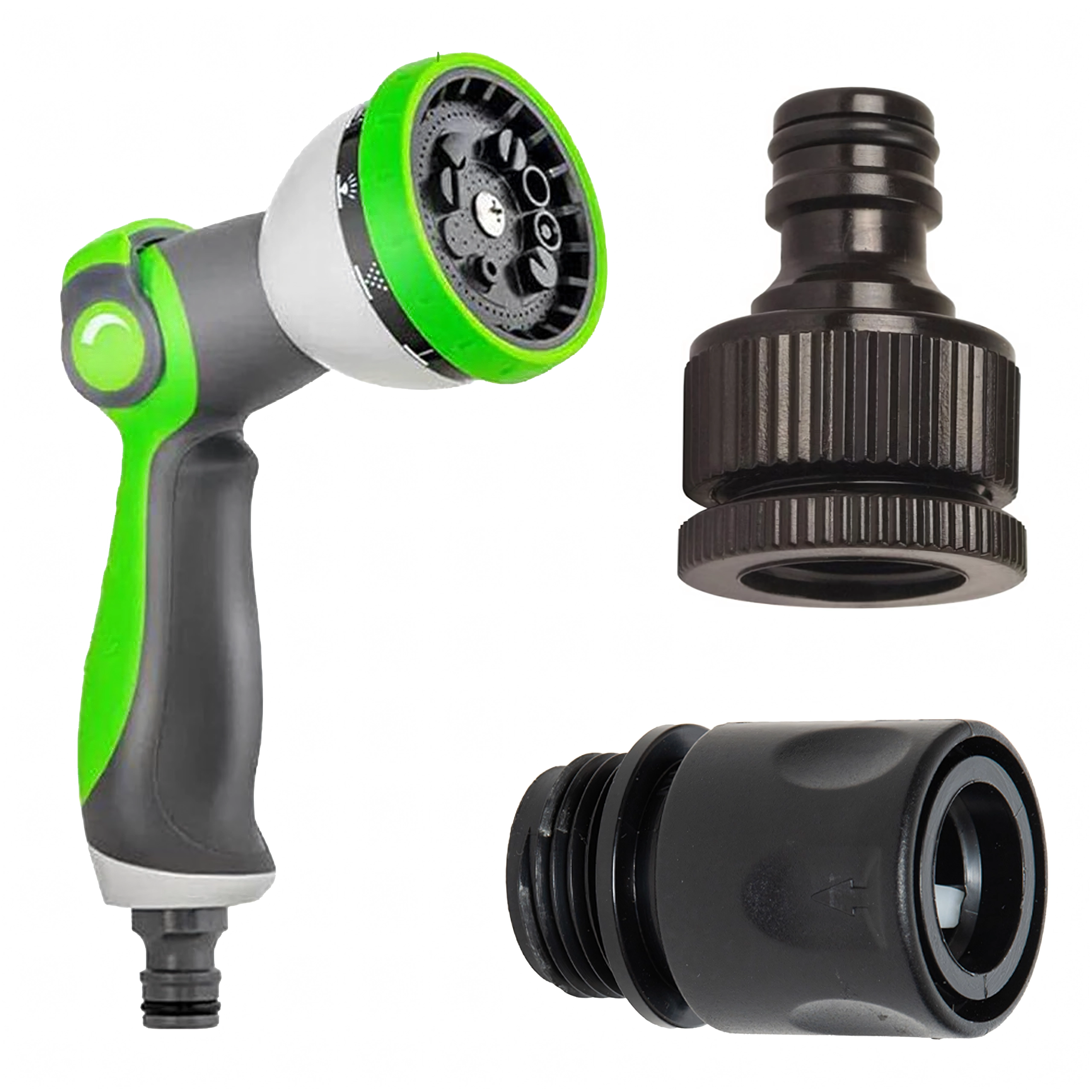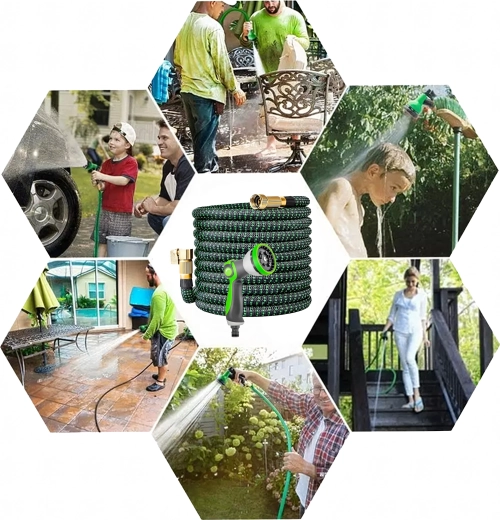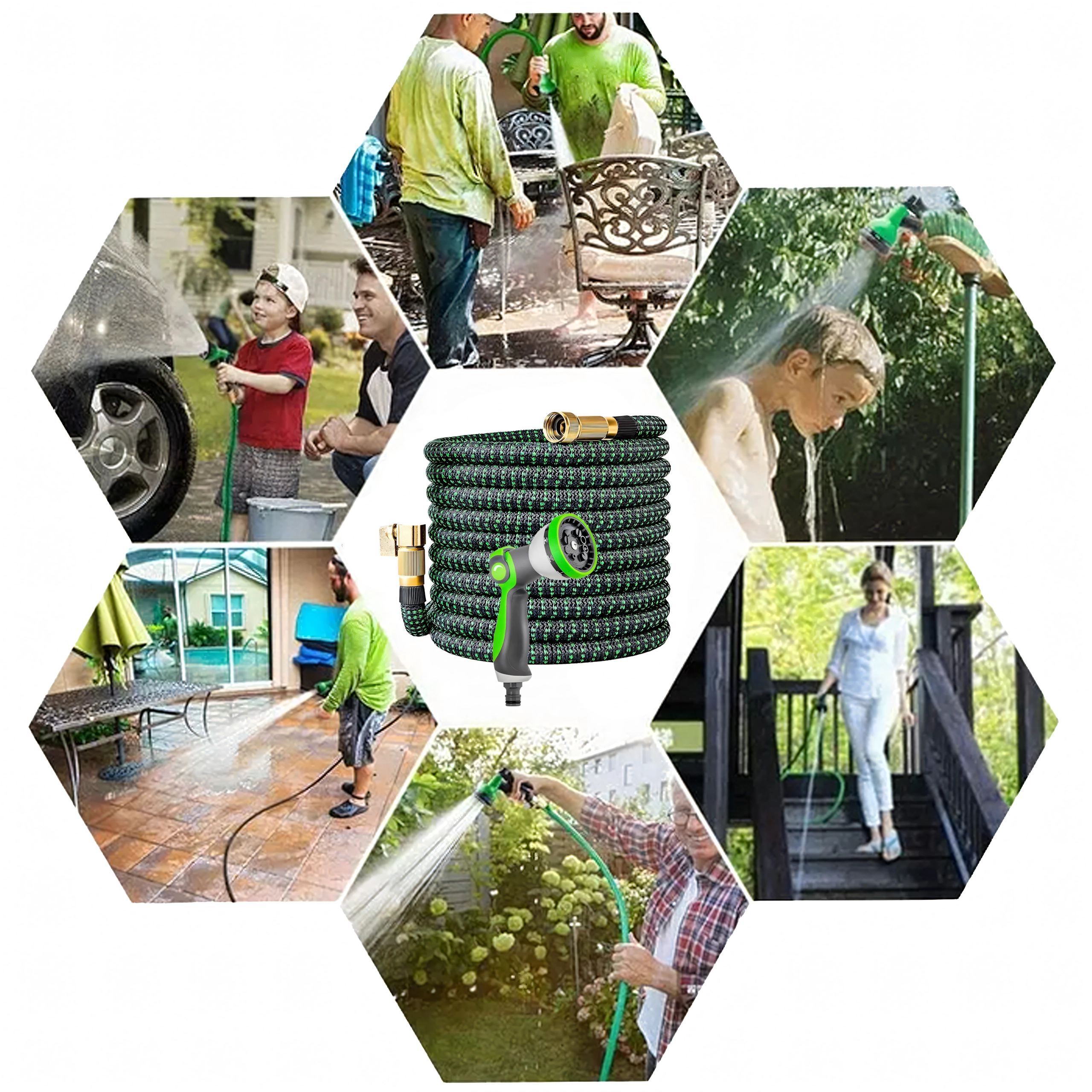 Ce tuyau extensible s’allonge jusqu’à 7,5 m une fois rempli d’eau, puis se rétracte de façon compacte après vidange pour un rangement facile. La tresse textile combinée aux raccords rapides en laiton garantit durabilité, étanchéité et longue durée de vie. Le pistolet ergonomique offre plusieurs réglages, de la fine brume au jet puissant.