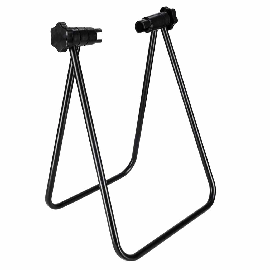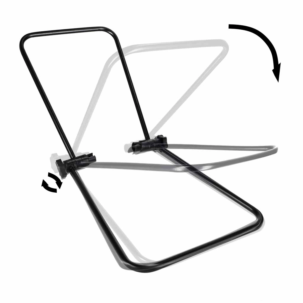 Après usage, le support se replie facilement en dimensions compactes, ce qui est idéal dans un petit appartement, un garage ou un atelier. Son design universel convient à un large éventail de vélos et les surfaces de contact en caoutchouc protègent le cadre et le moyeu.