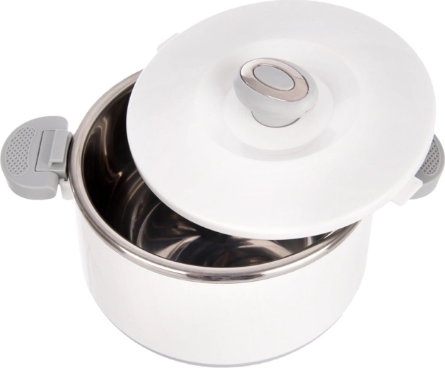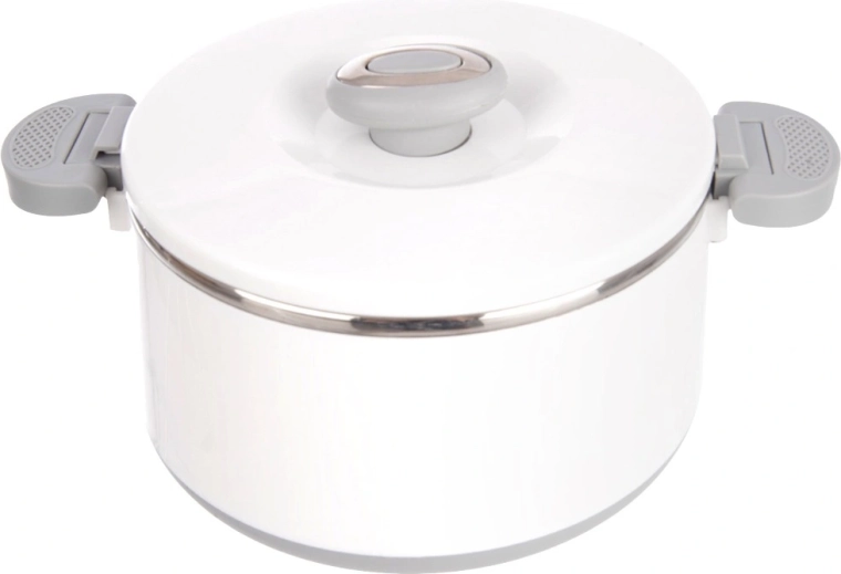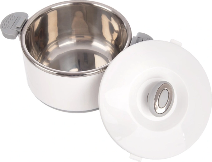 Conservez votre déjeuner à la température idéale grâce à cette boîte isotherme de 1,6 l. L’insert intérieur en acier inoxydable garantit l’hygiène et une excellente isolation thermique, tandis que la coque blanche résistante et les poignées grises facilitent la manipulation. Une excellente solution pour les soupes, sauces et desserts – en été, elle convient aussi au stockage de la glace.