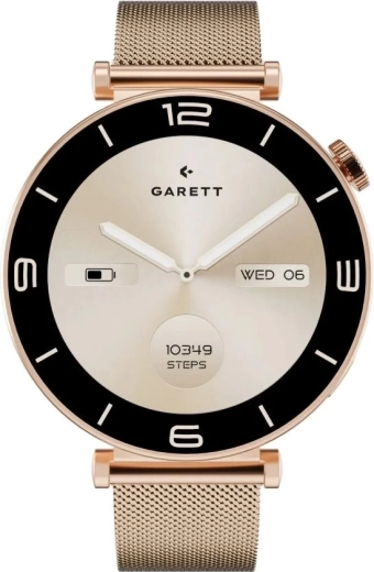 Découvrez l’alliance parfaite du design et des fonctionnalités. La Garett Rose séduit par son boîtier métallique premium en or rose et son fin bracelet milanais, confortable au poignet. Son écran AMOLED 1,32" (466 × 466 px) offre un contraste de haut niveau, des couleurs intenses et une excellente lisibilité. La fonction Always On Display affiche discrètement l’heure toute la journée et le large choix de cadrans permet d’adapter le style à chaque occasion.