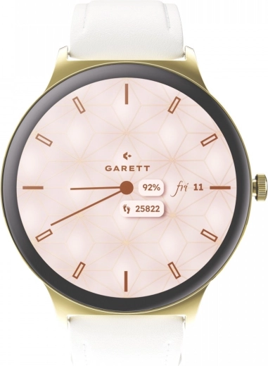 La GARETT Verona 2 se distingue par un boîtier fin (seulement 7,5 mm), une couronne rotative pour une navigation rapide et une finition premium. L’écran AMOLED 1,43" avec une définition de 466 × 466 px offre des couleurs éclatantes et une excellente lisibilité. Le Gorilla Glass protège l’écran contre les rayures et les chocs, et la fonction Always On Display affiche discrètement l’heure.