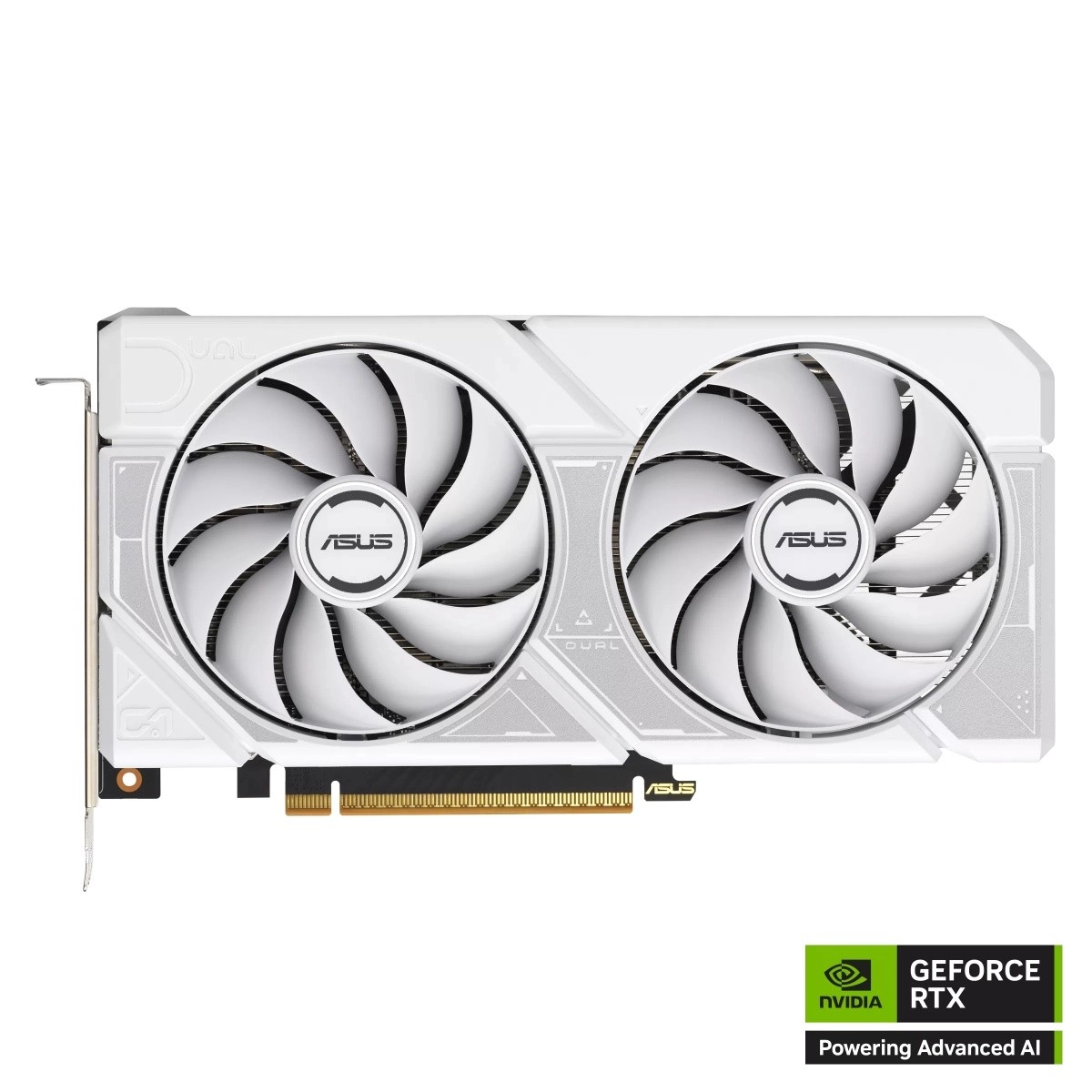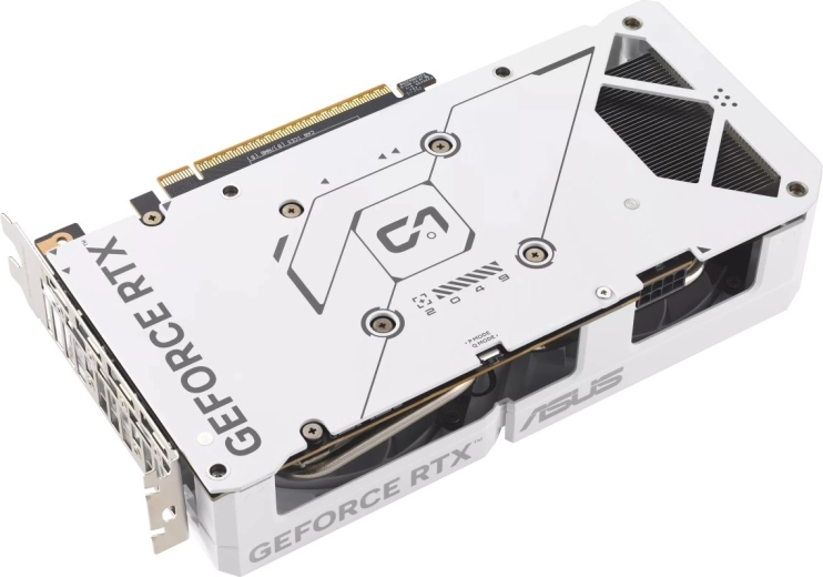 L’ASUS Dual GeForce RTX 5060 OC White mise sur un design compact et un refroidissement efficace hérité des modèles phares. La paire de ventilateurs Axial-tech dirige le flux d’air directement vers le large radiateur afin de maintenir des températures stables même lors de longues sessions de jeu. La finition blanche s’intègre élégamment aux configurations claires et aux PC axés sur une esthétique épurée.